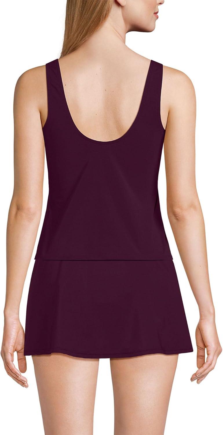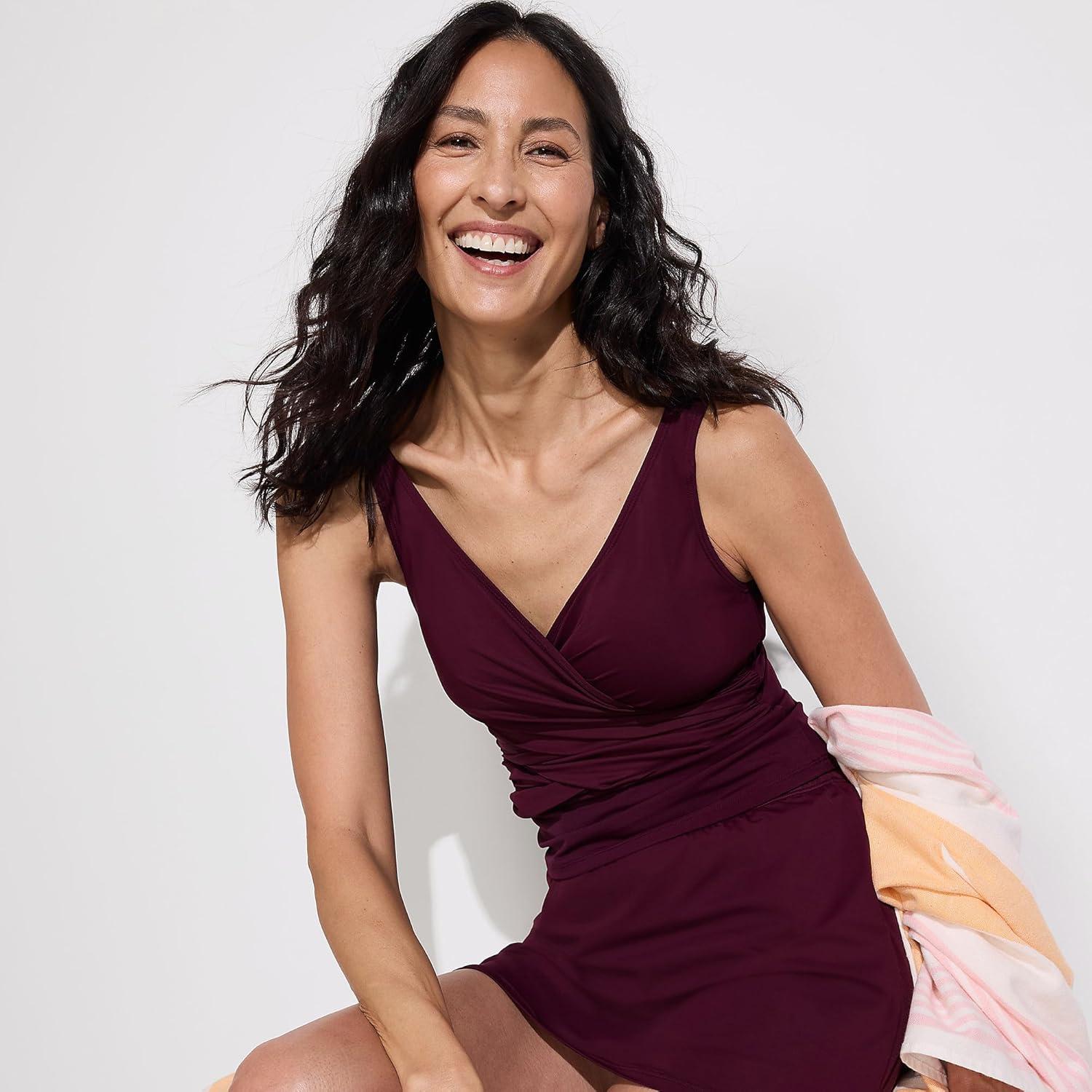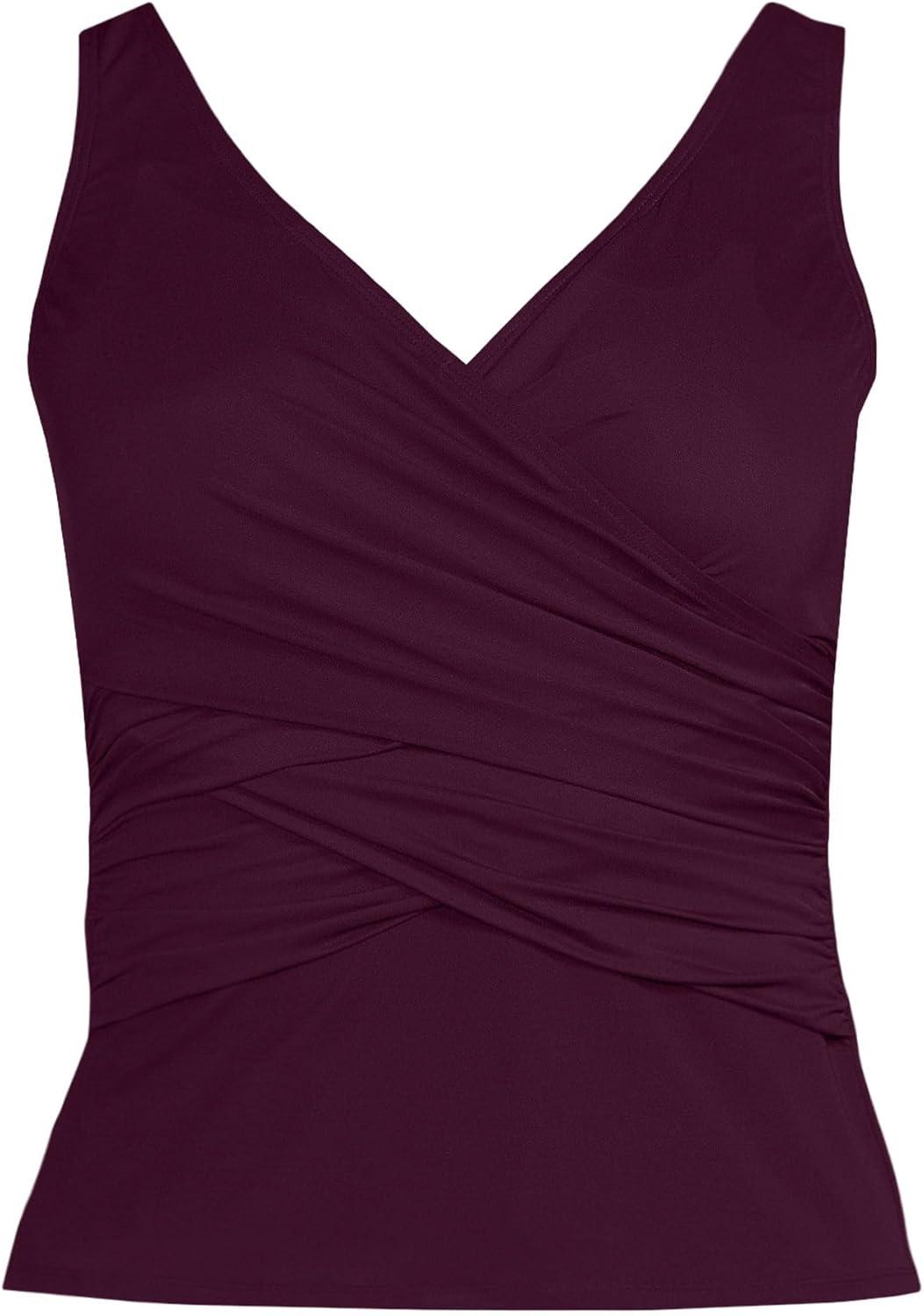 Lands’ End Women’s Slender Suit Tummy Control Wrap Tankini Swimsuit Top(Dark Wine)