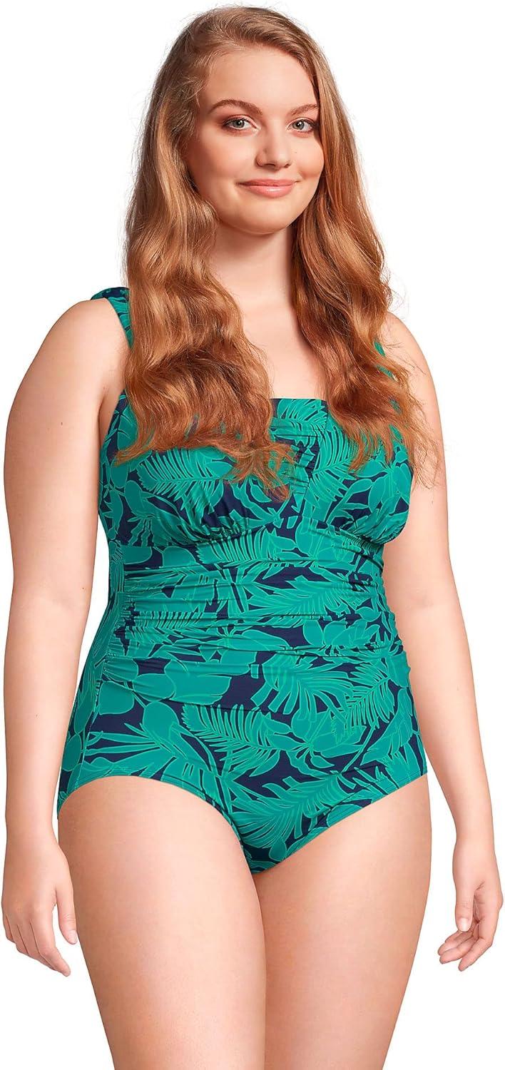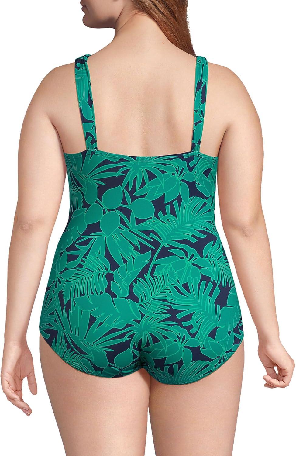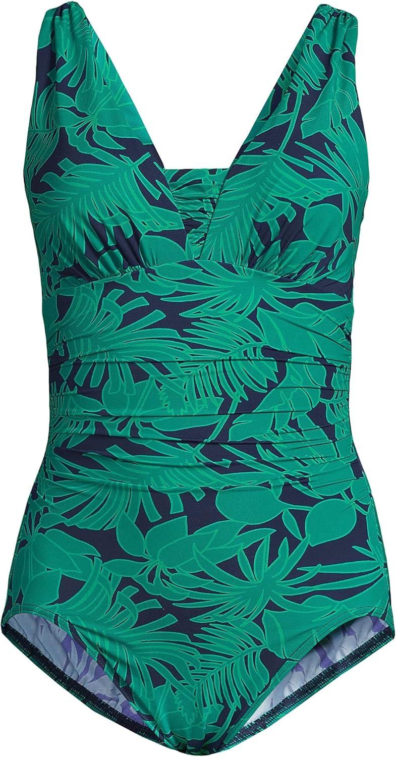 Lands’ End Women’s SlenderSuit Grecian Tummy Control Chlorine Resistant One Piece Swimsuit(Green)