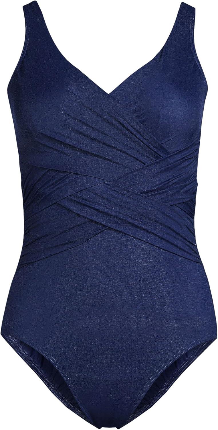 Lands’ End Women’s SlenderSuit Wrap One Piece Swimsuit(Navy)