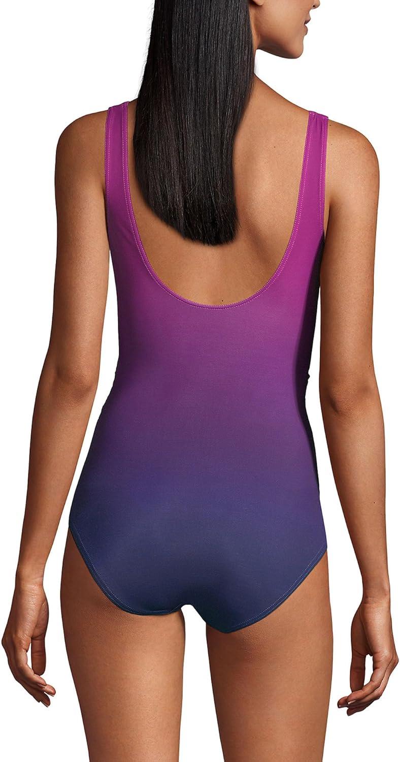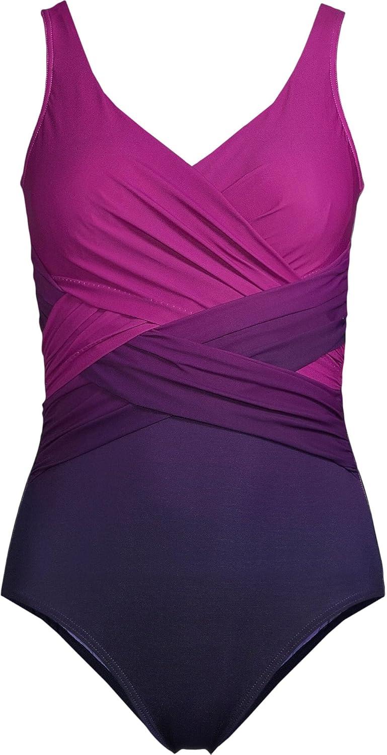 Lands’ End Women’s SlenderSuit Wrap One Piece Swimsuit(Ombre navy violet)