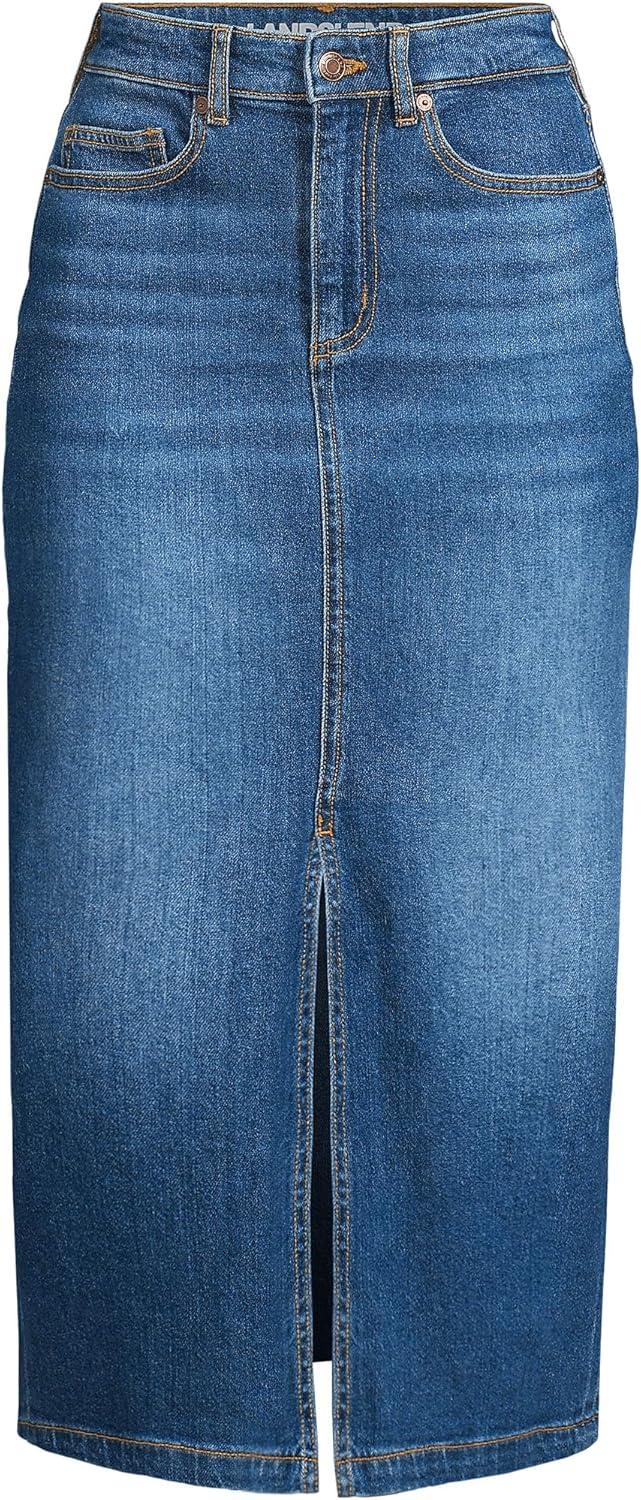 Lands’ End Women’s Soft Denim Midi Column Skirt(Indigo Tide Blue)