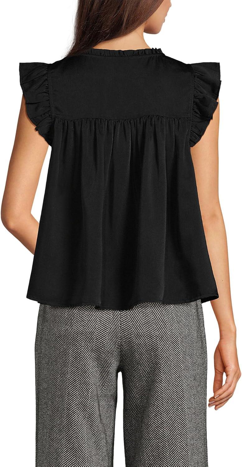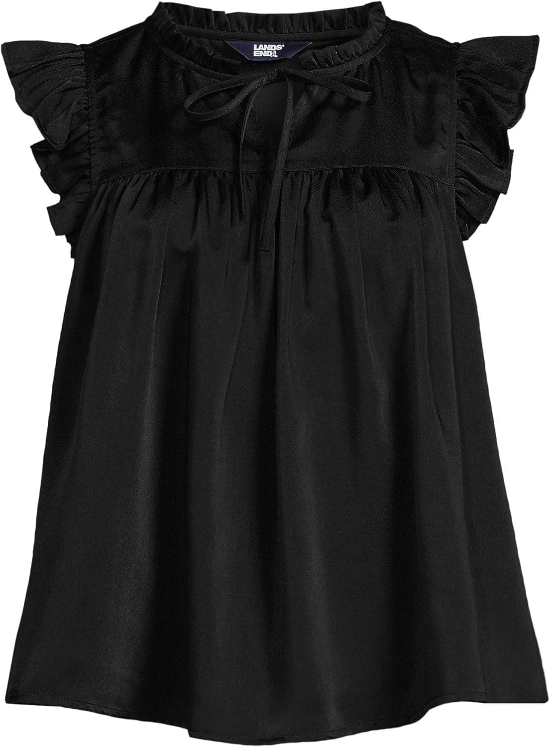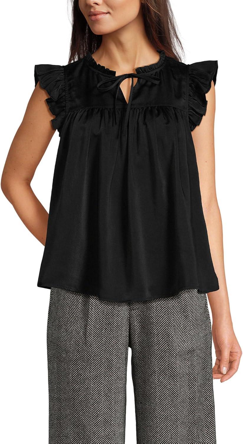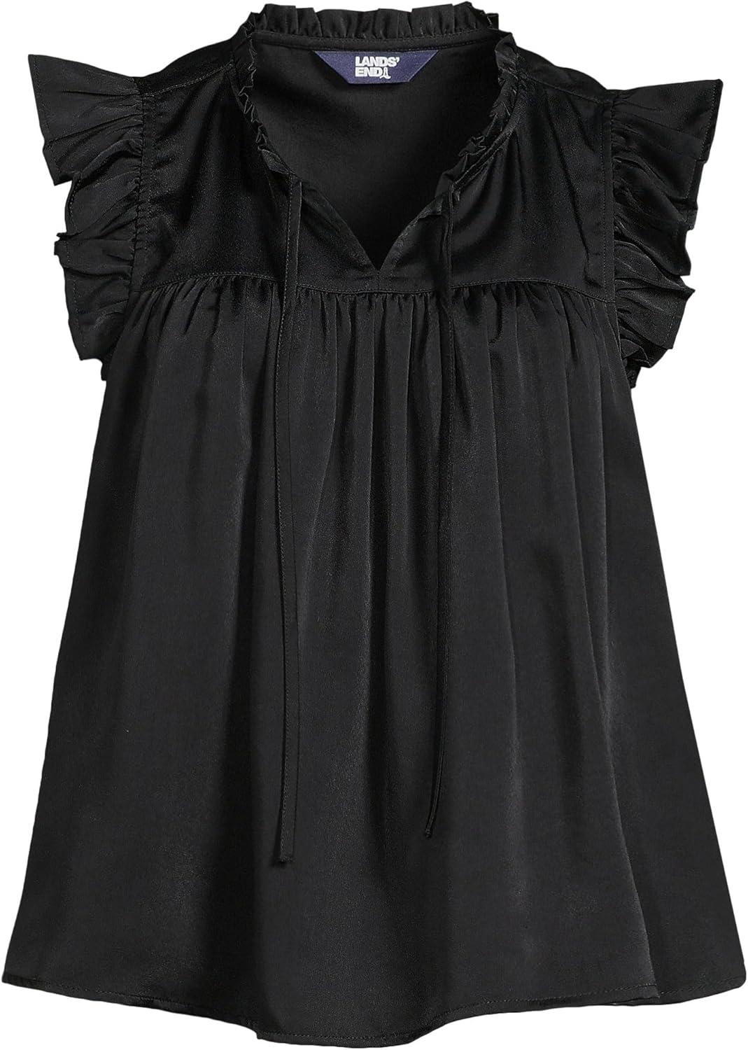 Lands’ End Women’s Split Neck Satin Ruffle Blouse(Black)