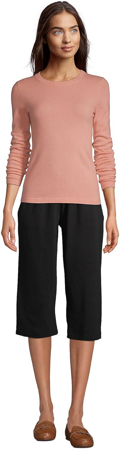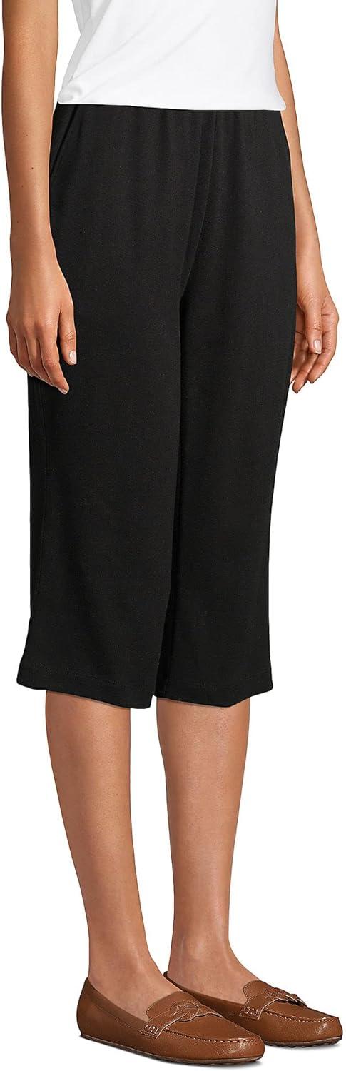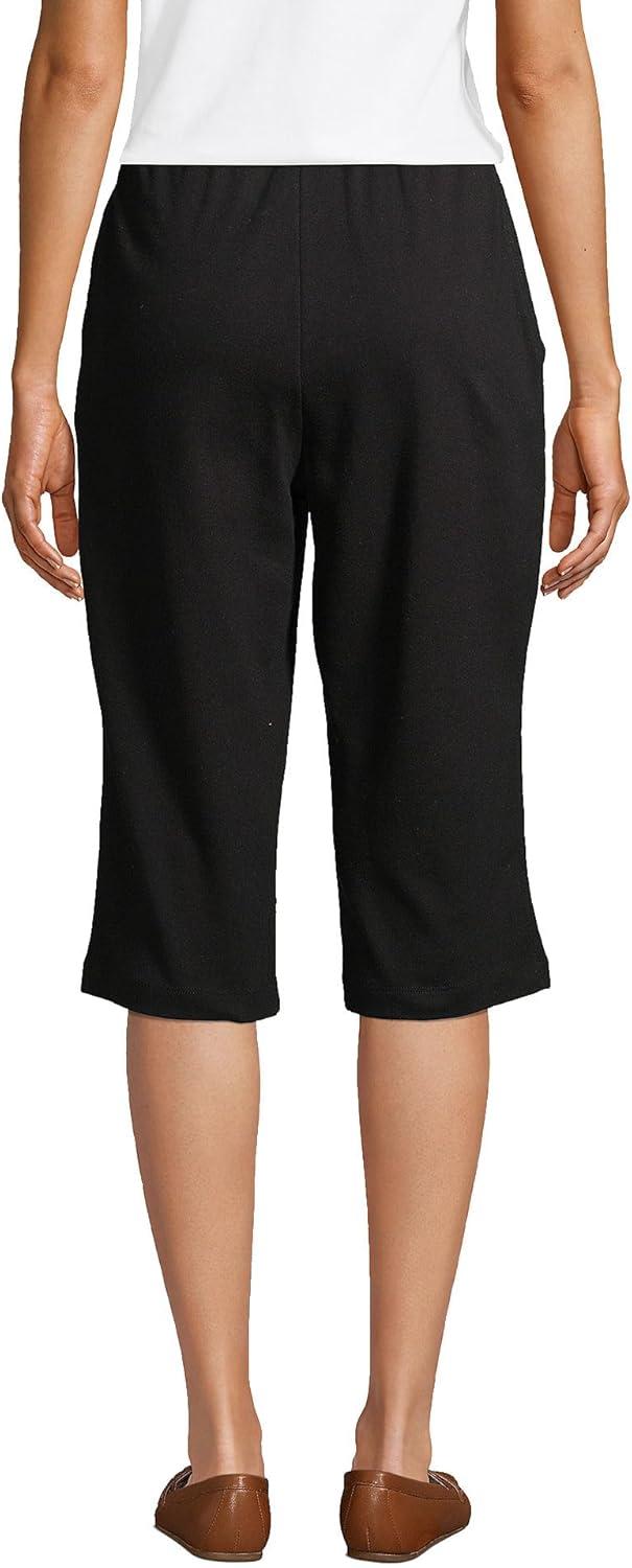 Lands’ End Women’s Sport Knit High Rise Elastic Waist Capri Pants(Black)