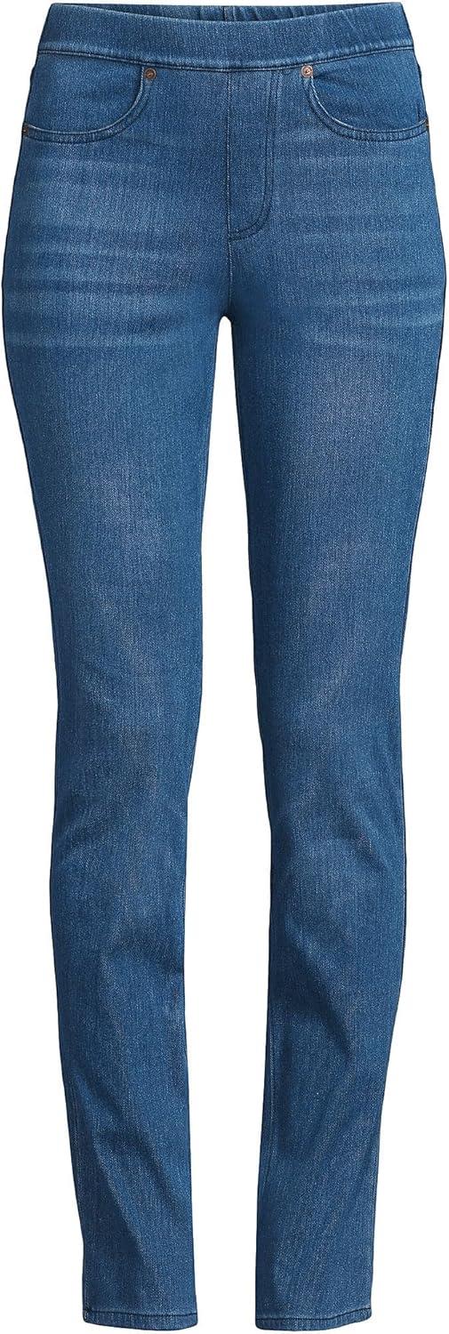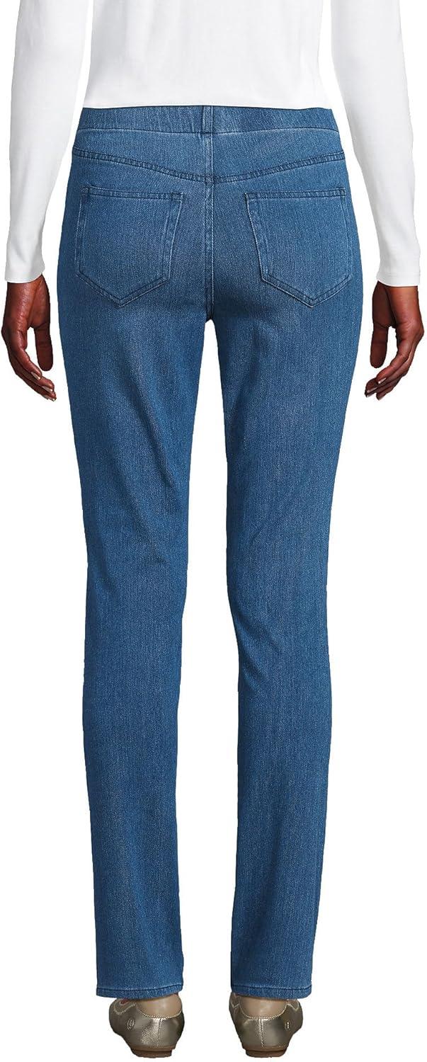 Lands’ End Women’s Starfish High Rise Knit Denim Straight Jeans(Medium Sea Blue)