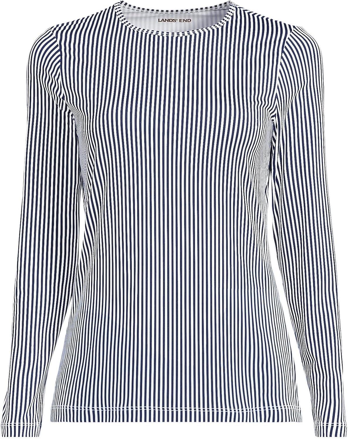 Lands’ End Women’s Sunshade UPF 50 Long Sleeve Relaxed Rash Guard(Deep Sea Navy Mini Stripe)
