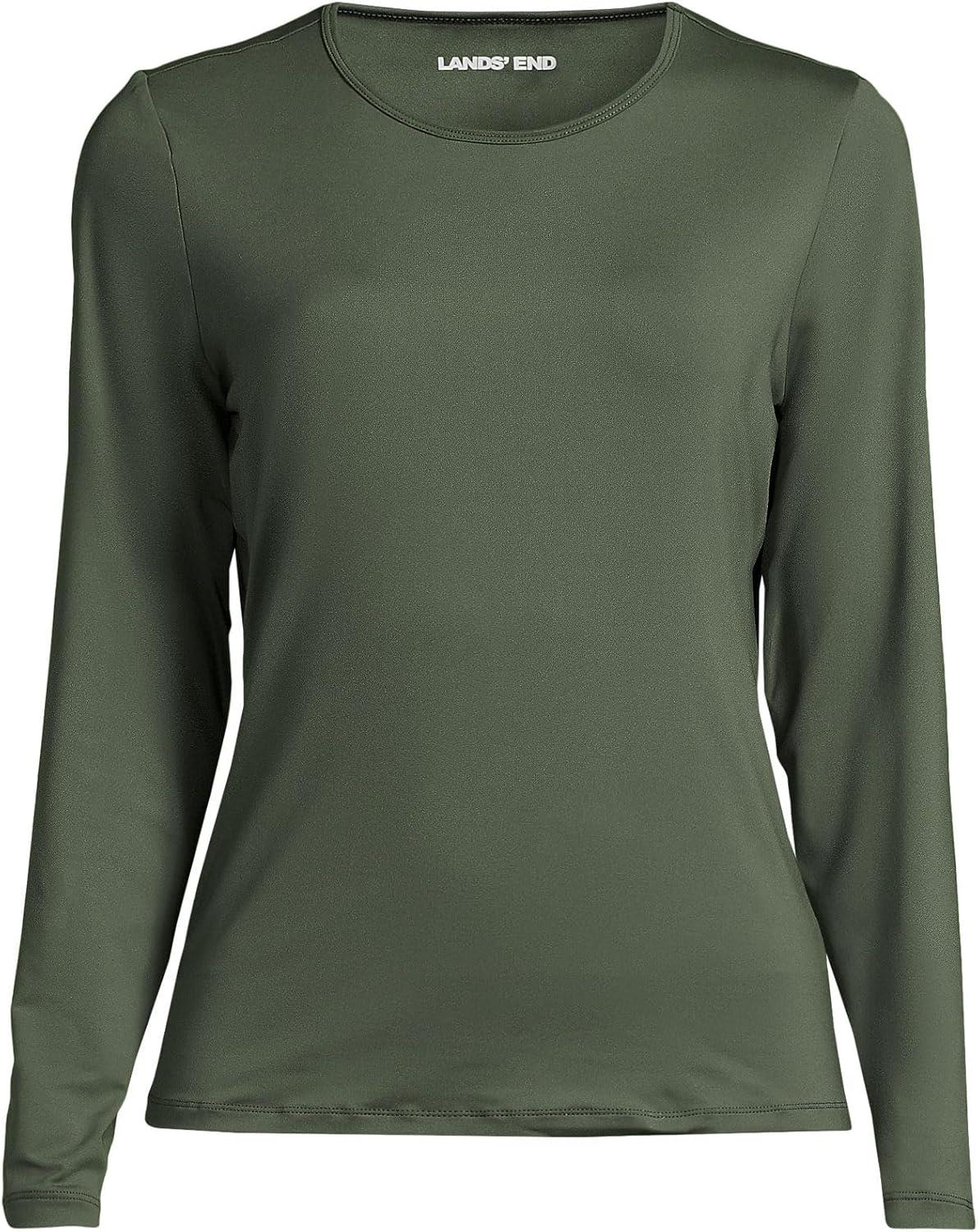 Lands’ End Women’s Sunshade UPF 50 Long Sleeve Relaxed Rash Guard(Rich Olive Greens)