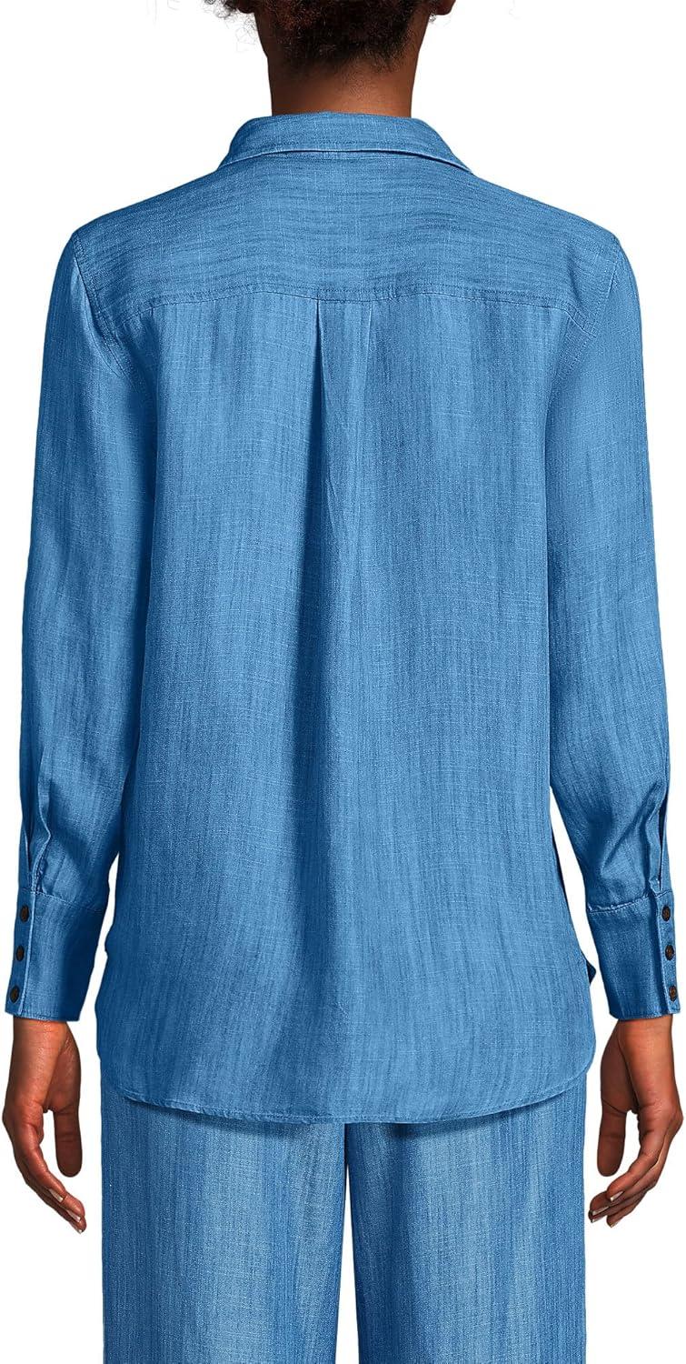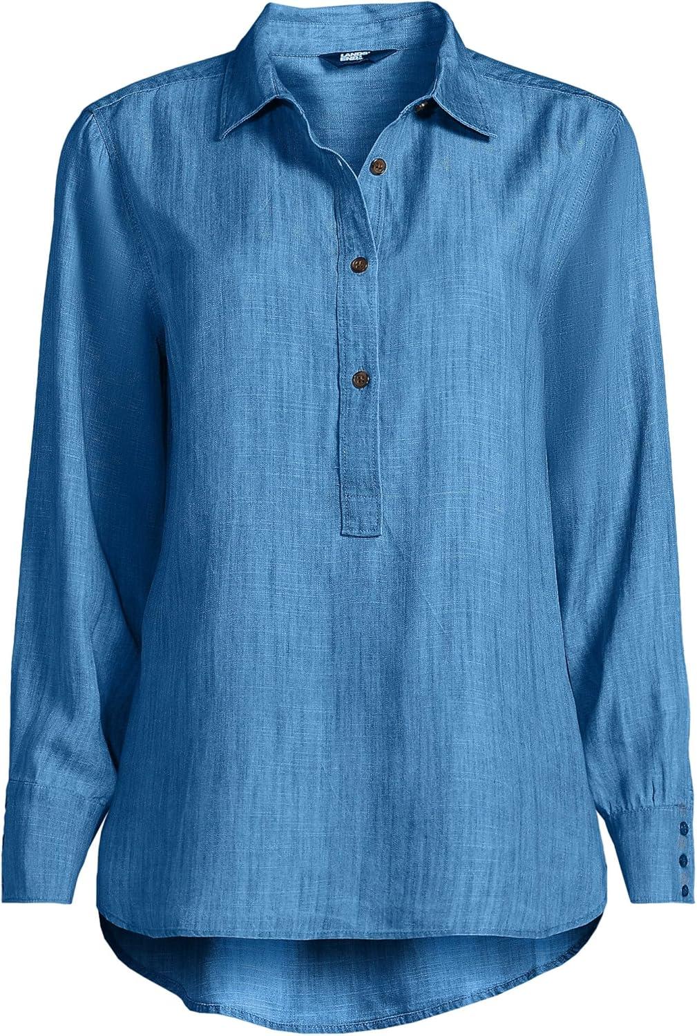 Lands’ End Women’s Tencel Fibers Twill Popover Shirt(Soft Indigo)