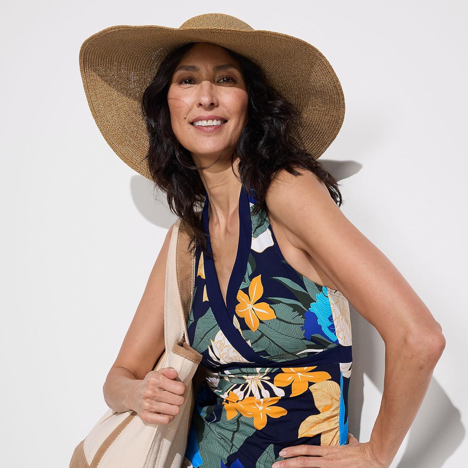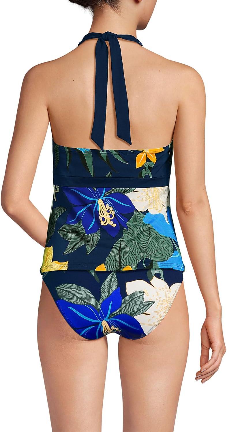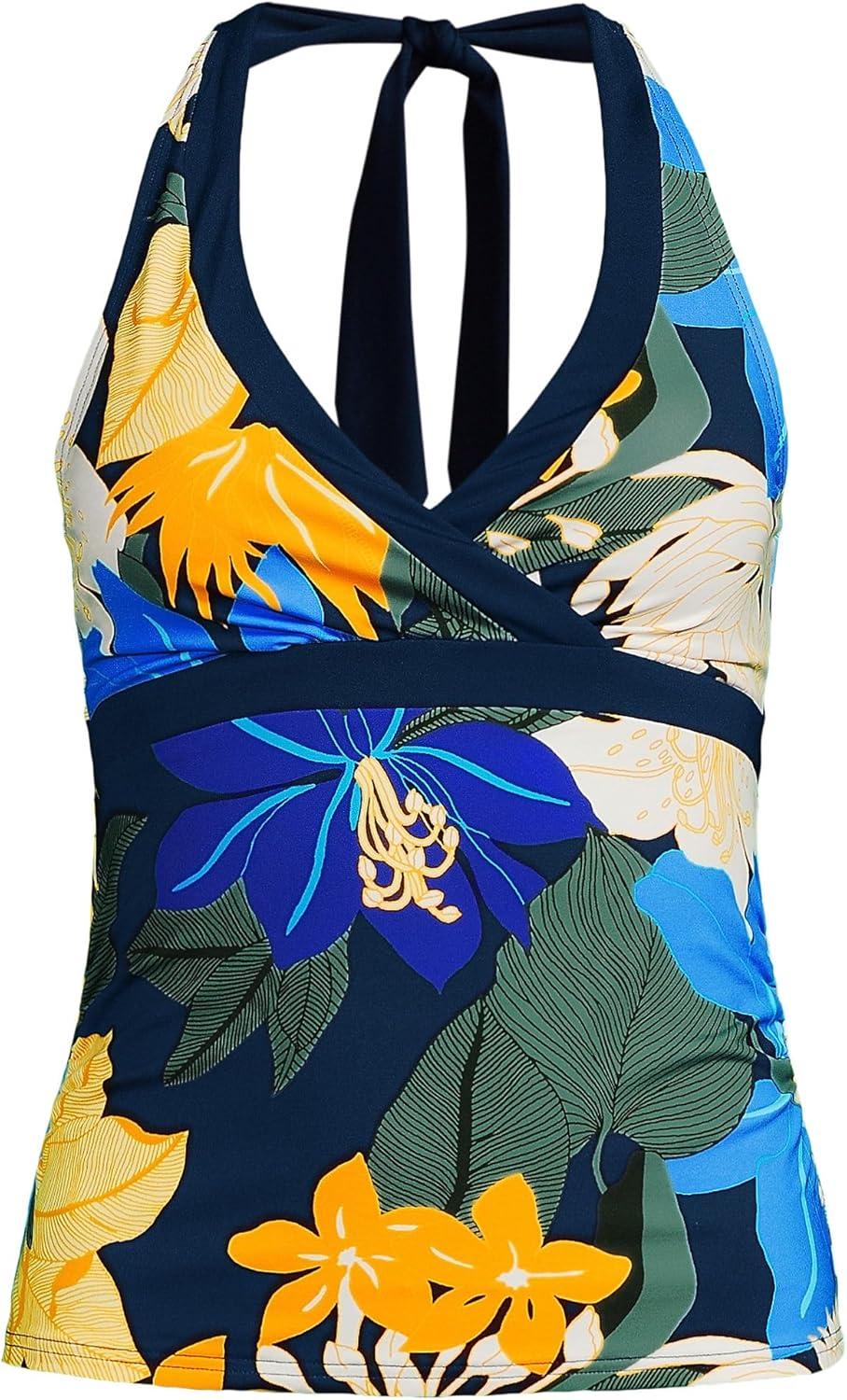Lands’ End Women’s Texture V-Neck Halter Tankini Swimsuit Top(Navy Multi Floral Blooms)