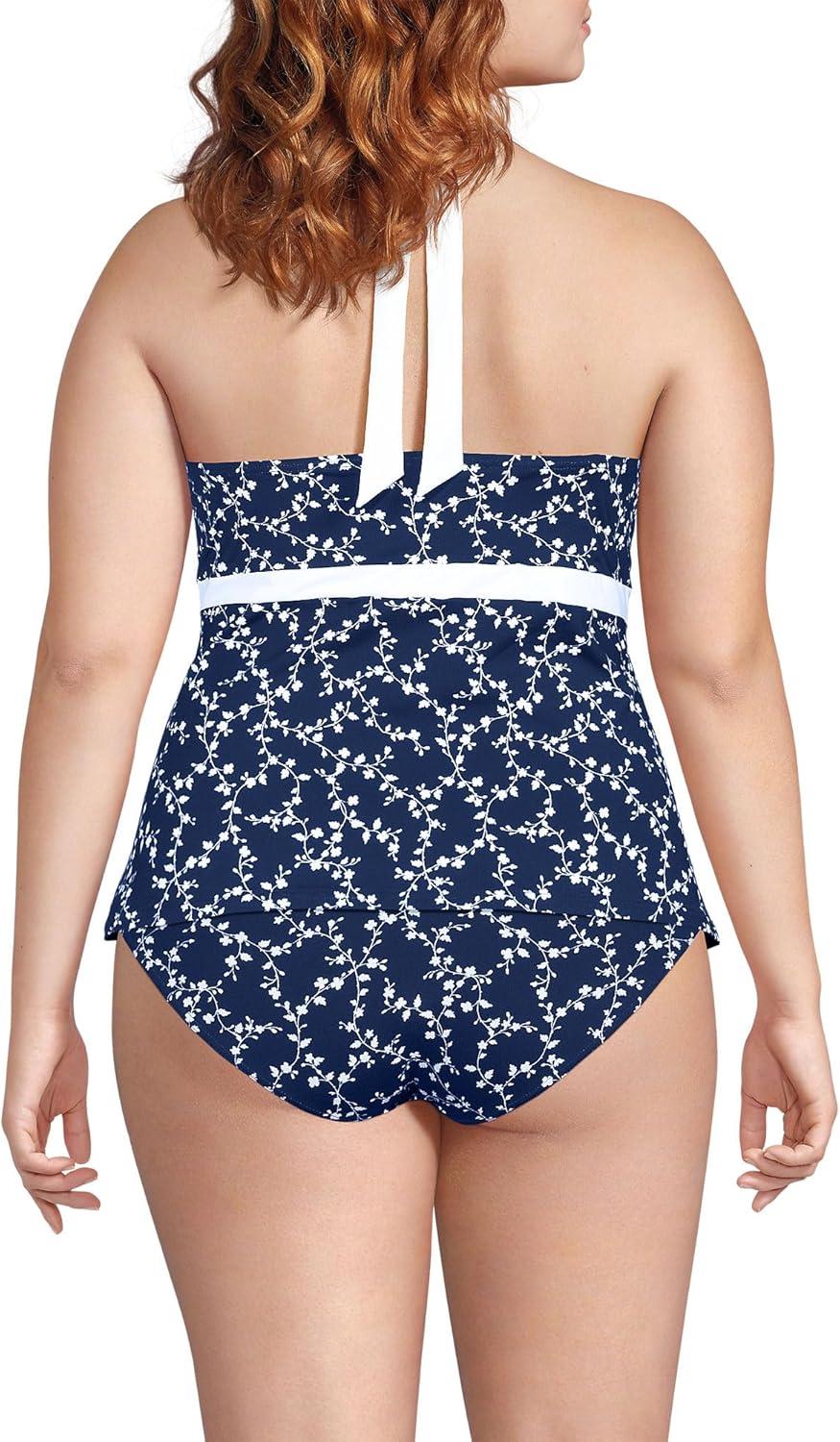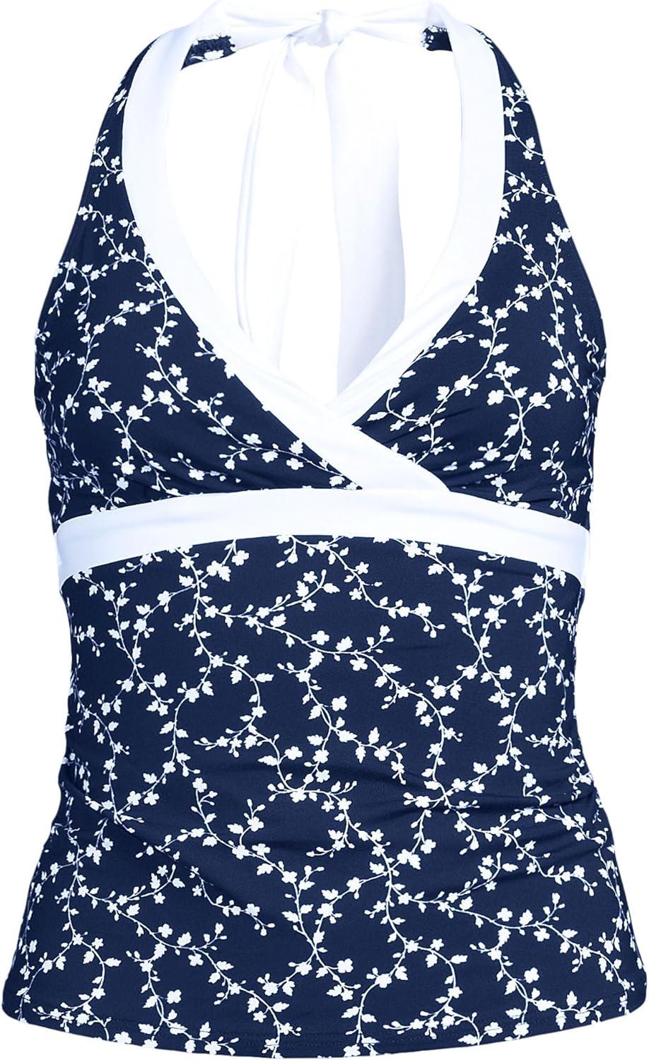 Lands’ End Women’s Texture V-Neck Halter Tankini Swimsuit Top(Navy/White Flowering Vine)
