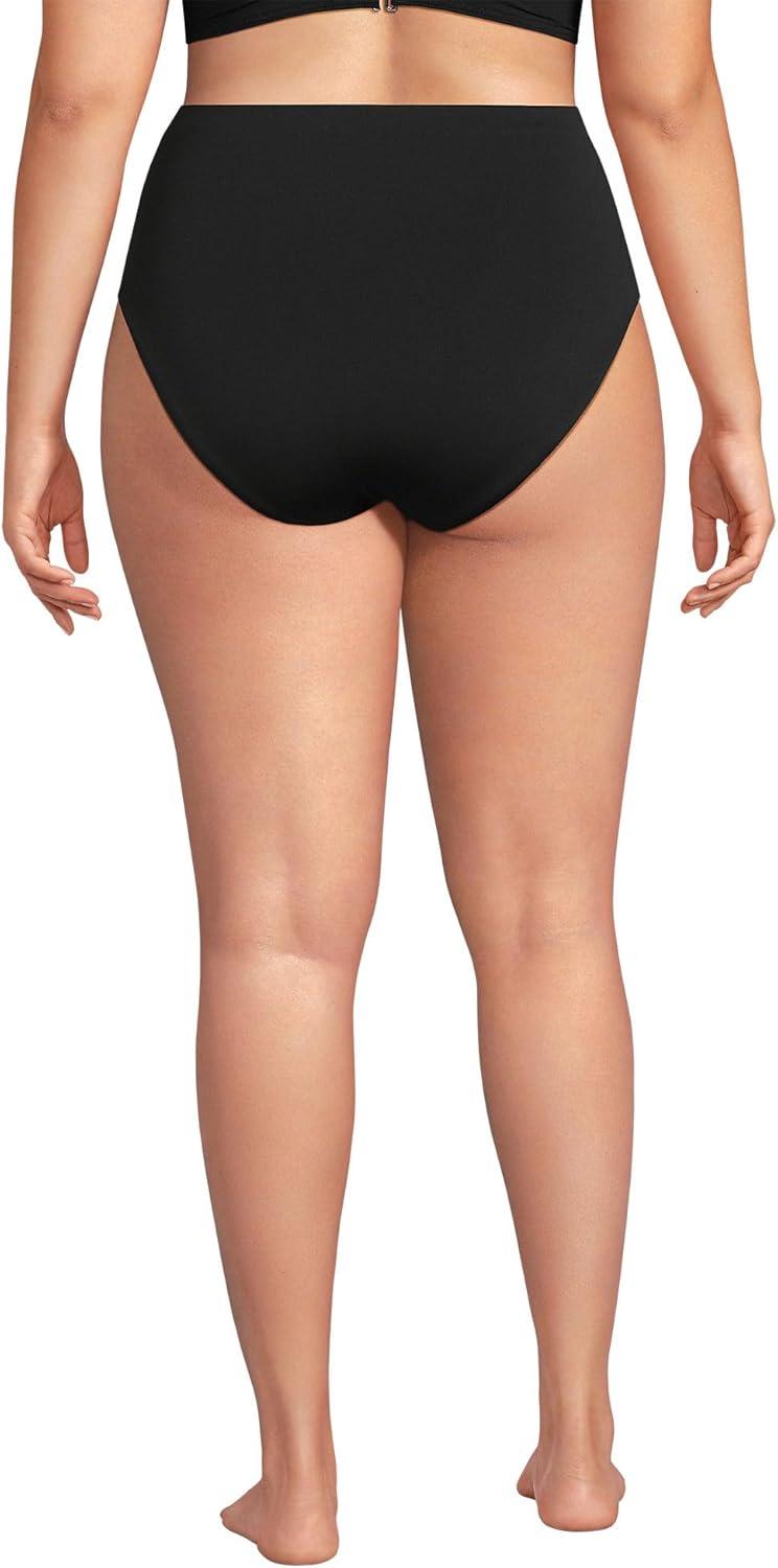 Lands’ End Women’s Tugless Quickdry High Waisted High Leg Bikini Bottoms(Black)