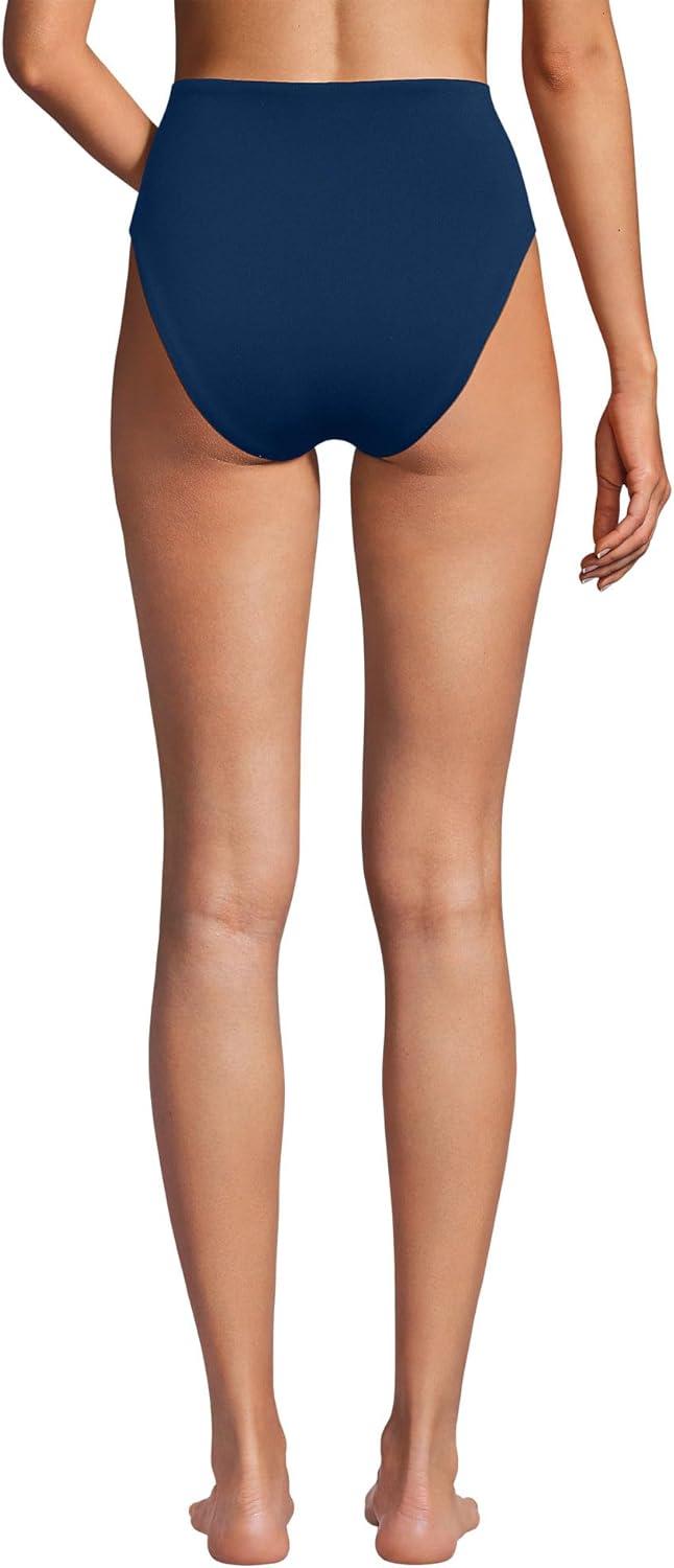 Lands’ End Women’s Tugless Quickdry High Waisted High Leg Bikini Bottoms(Deep Sea Navy)