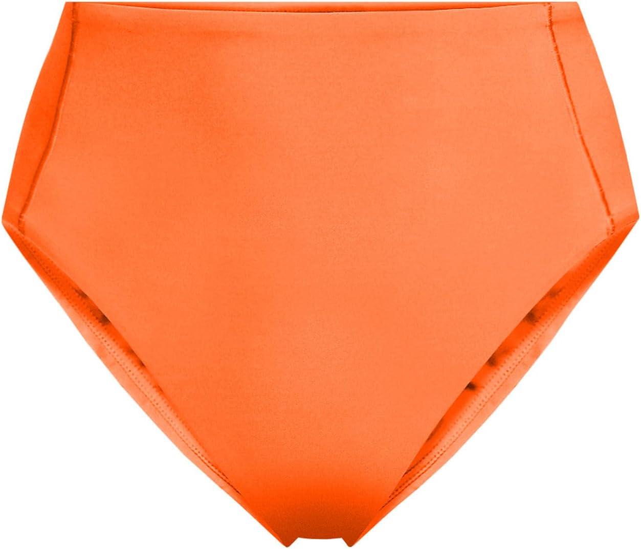 Lands’ End Women’s Tugless Quickdry High Waisted High Leg Bikini Bottoms(Neon Tangerine)