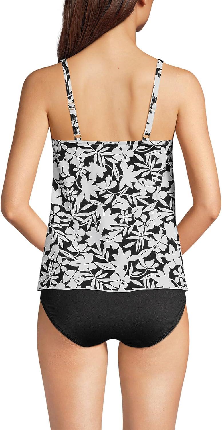 Lands’ End Women’s Tulip Hem Tankini Top(Black Havana Floral)