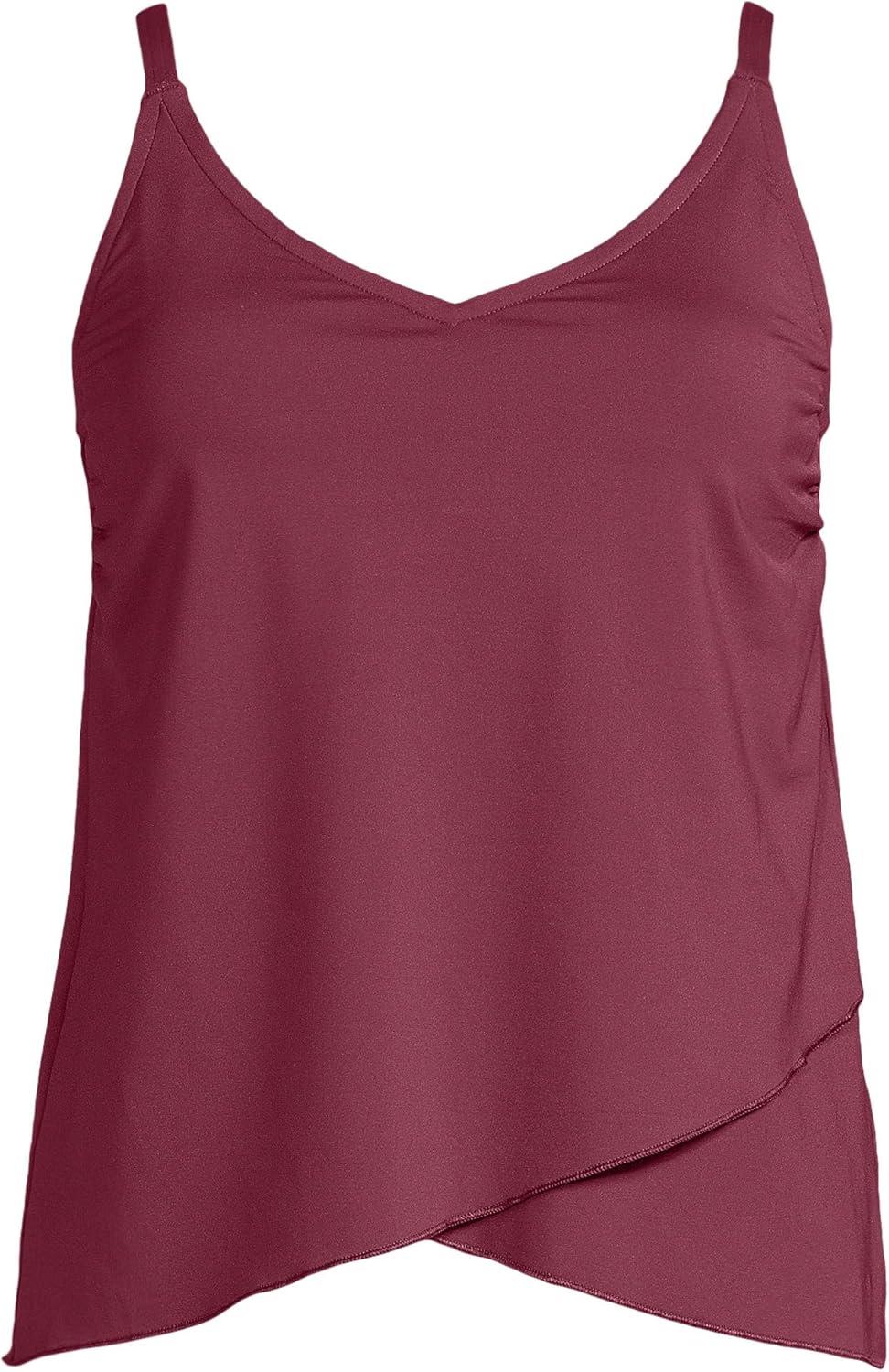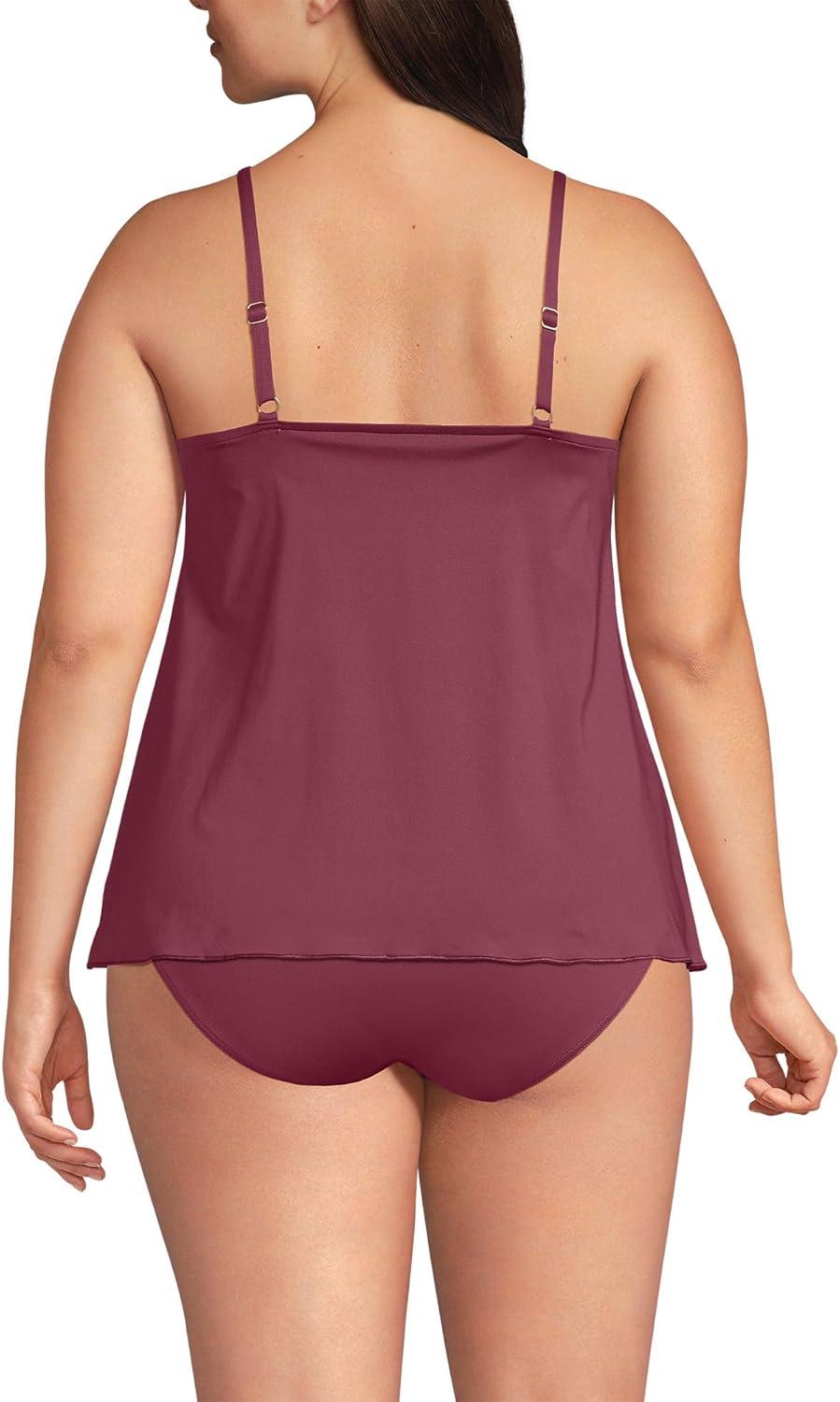 Lands’ End Women’s Tulip Hem Tankini Top(Burgundy Spritz)