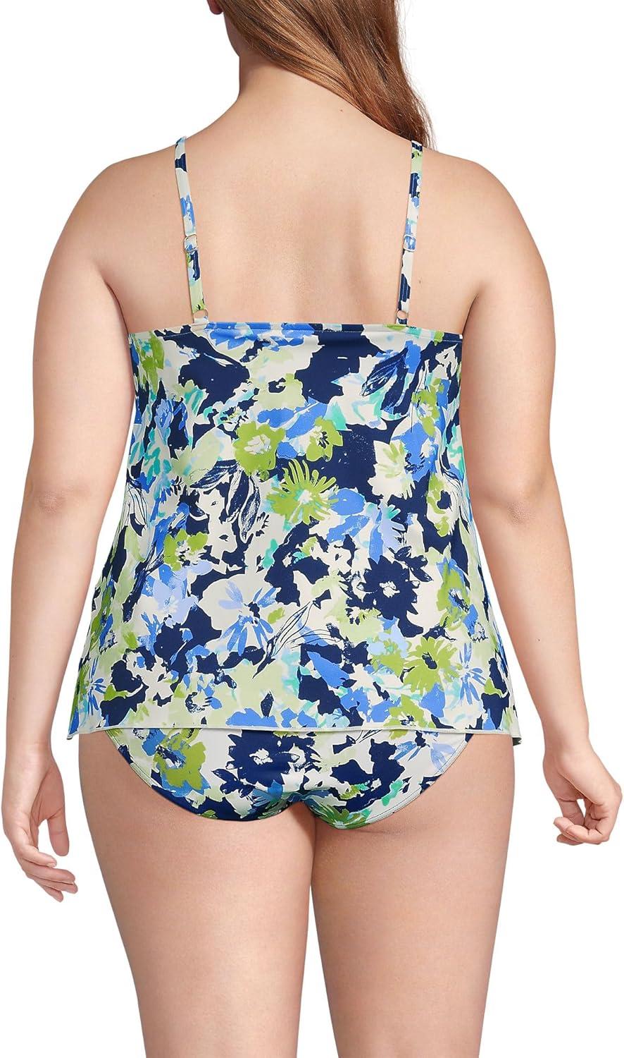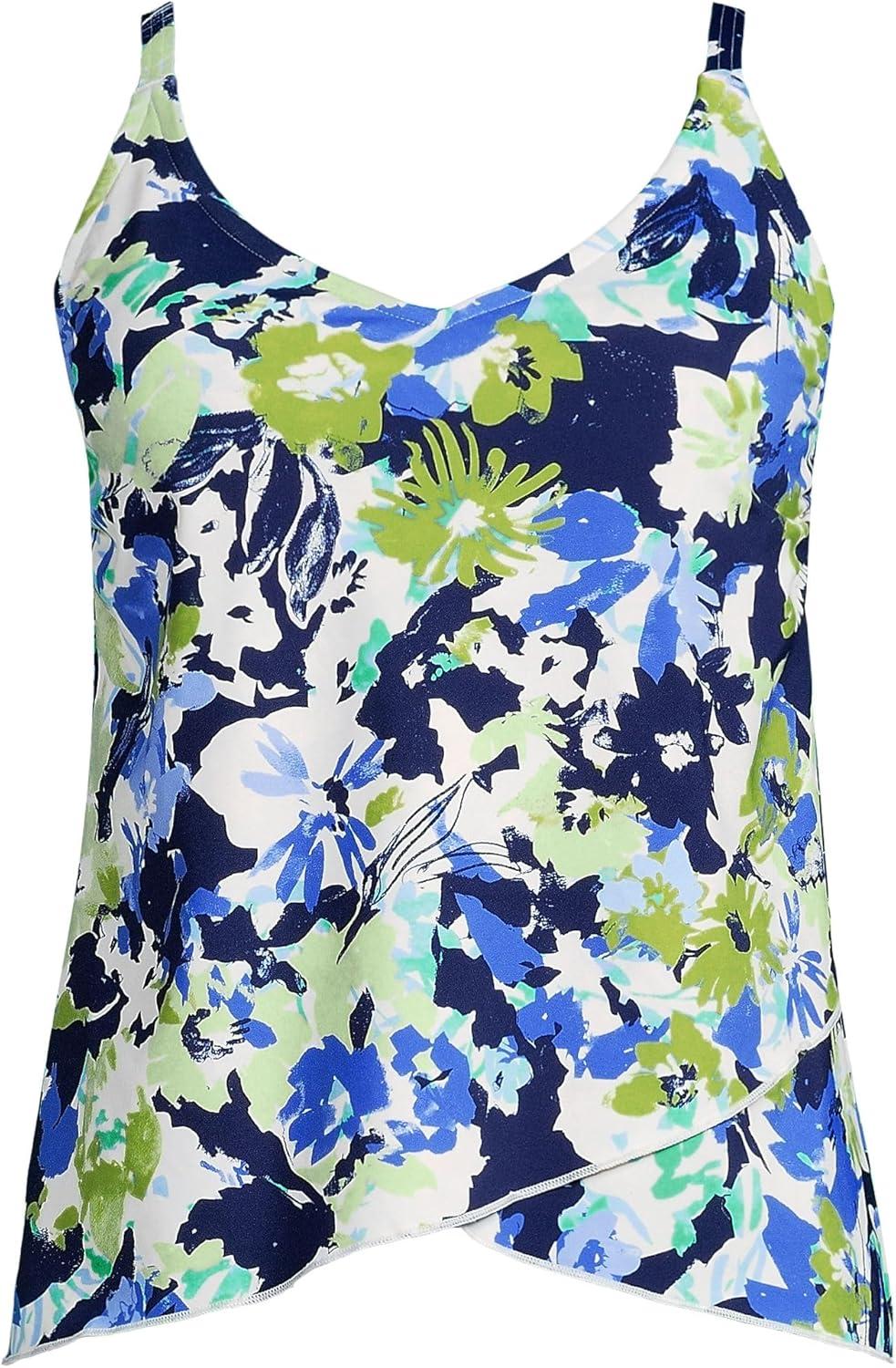 Lands’ End Women’s Tulip Hem Tankini Top(Deep Sea Navy Multi Floral)