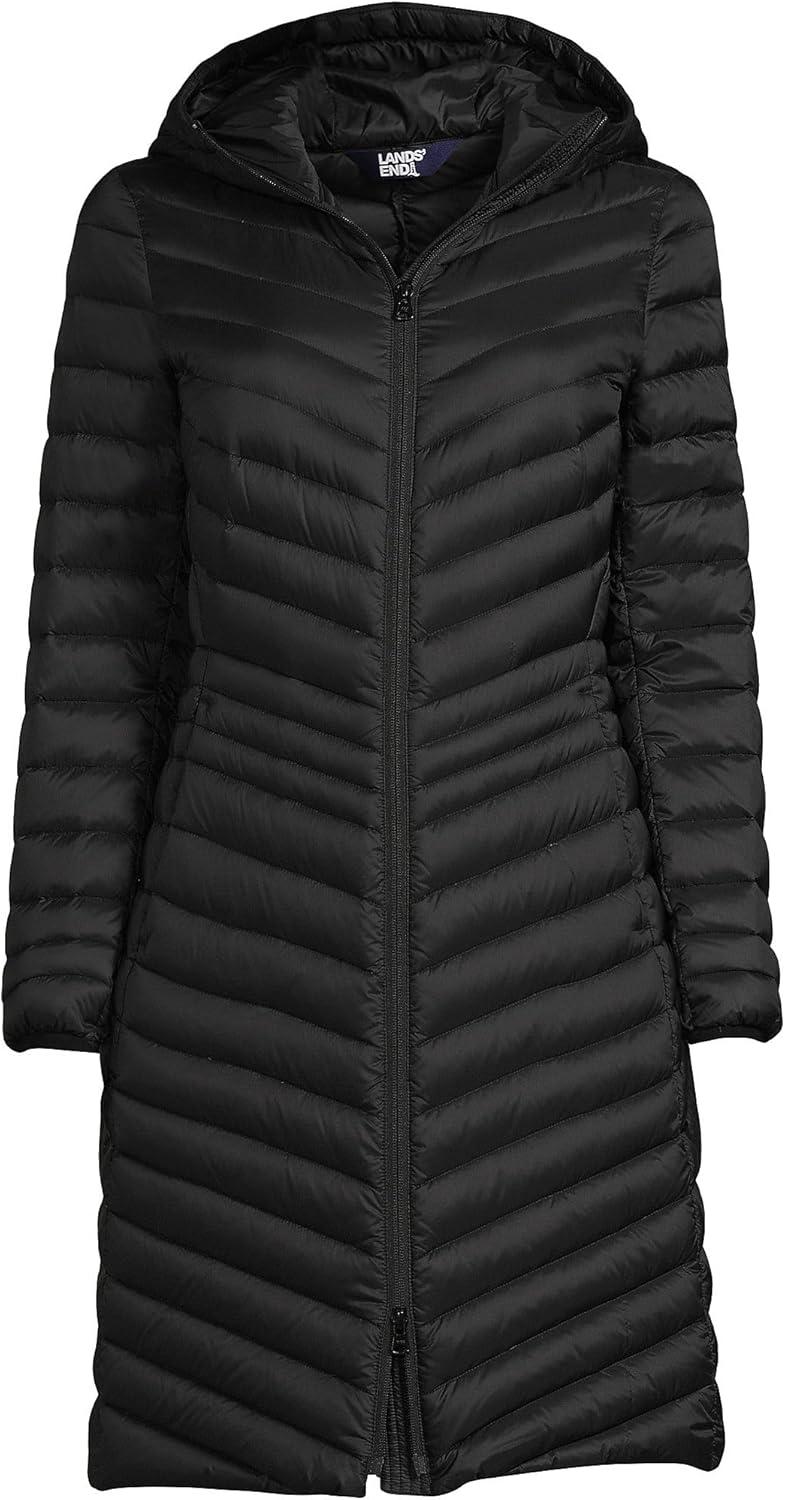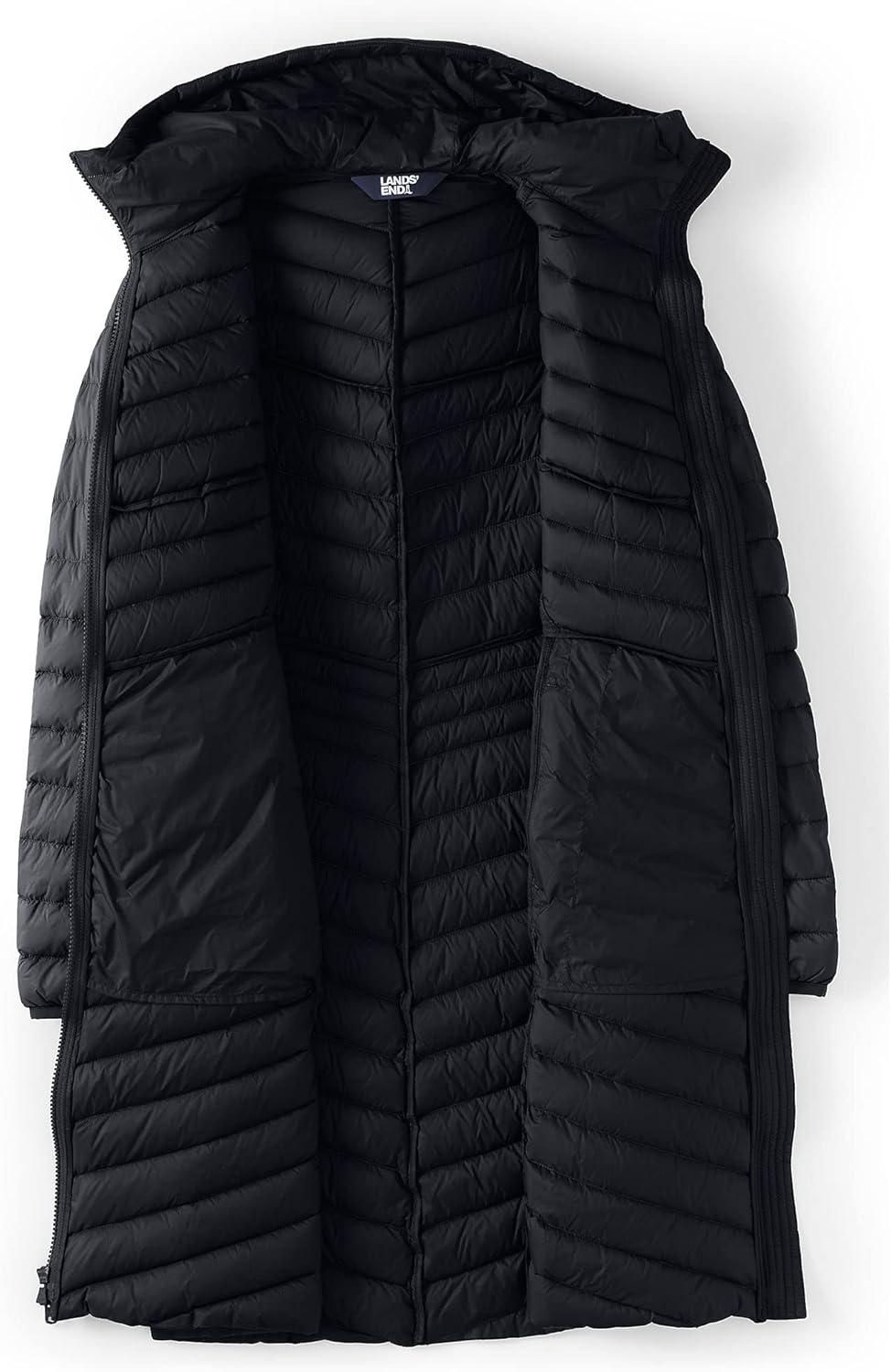 Lands’ End Women’s Ultralight Packable Long Down Coat(Black)