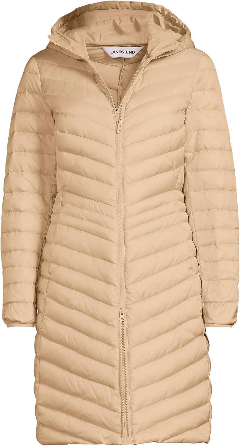 Lands’ End Women’s Ultralight Packable Long Down Coat(Champagne Shine)