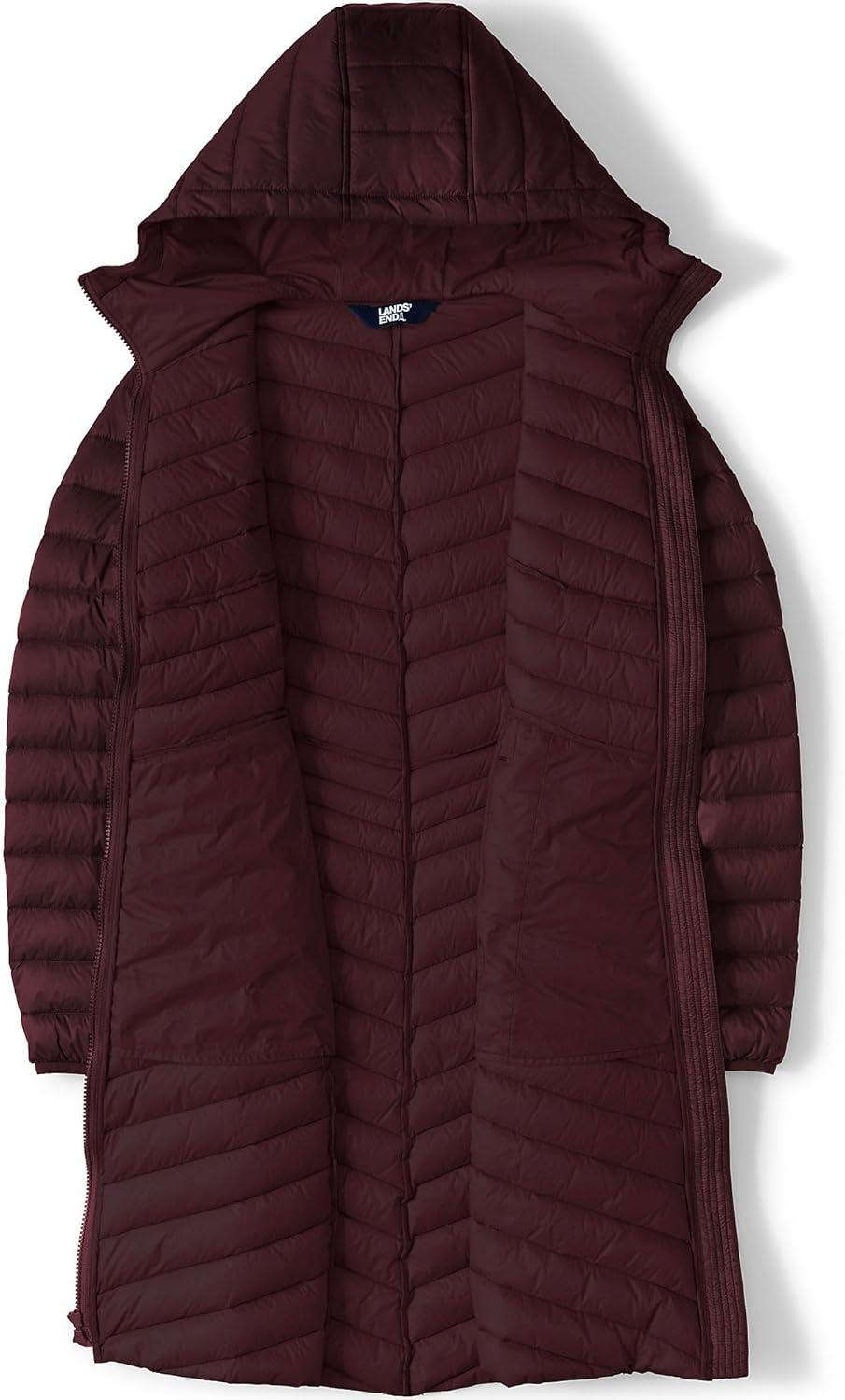 Lands’ End Women’s Ultralight Packable Long Down Coat(Lush Burgundy)
