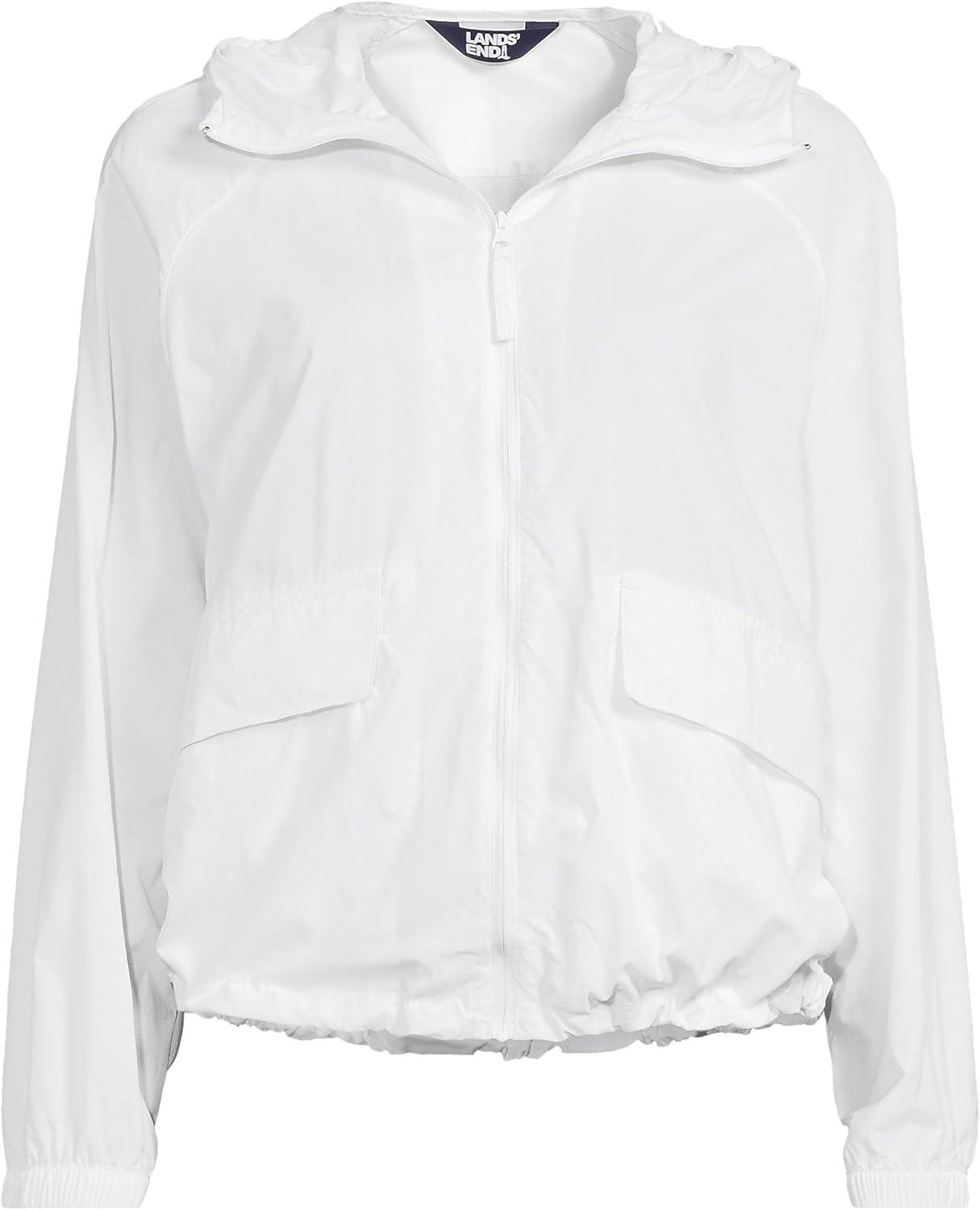 Lands’ End Women’s UPF Packable Hooded Windbreaker Jacket(White)