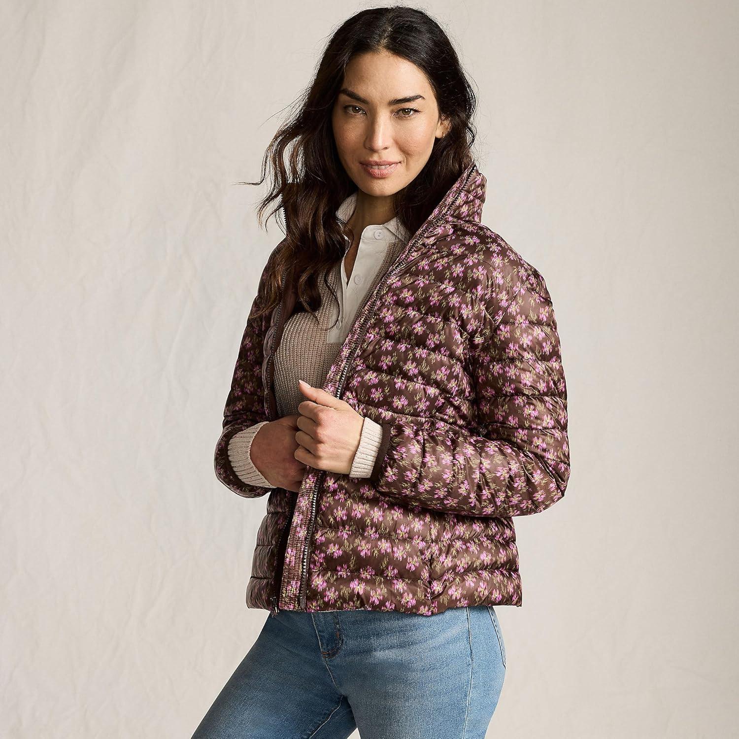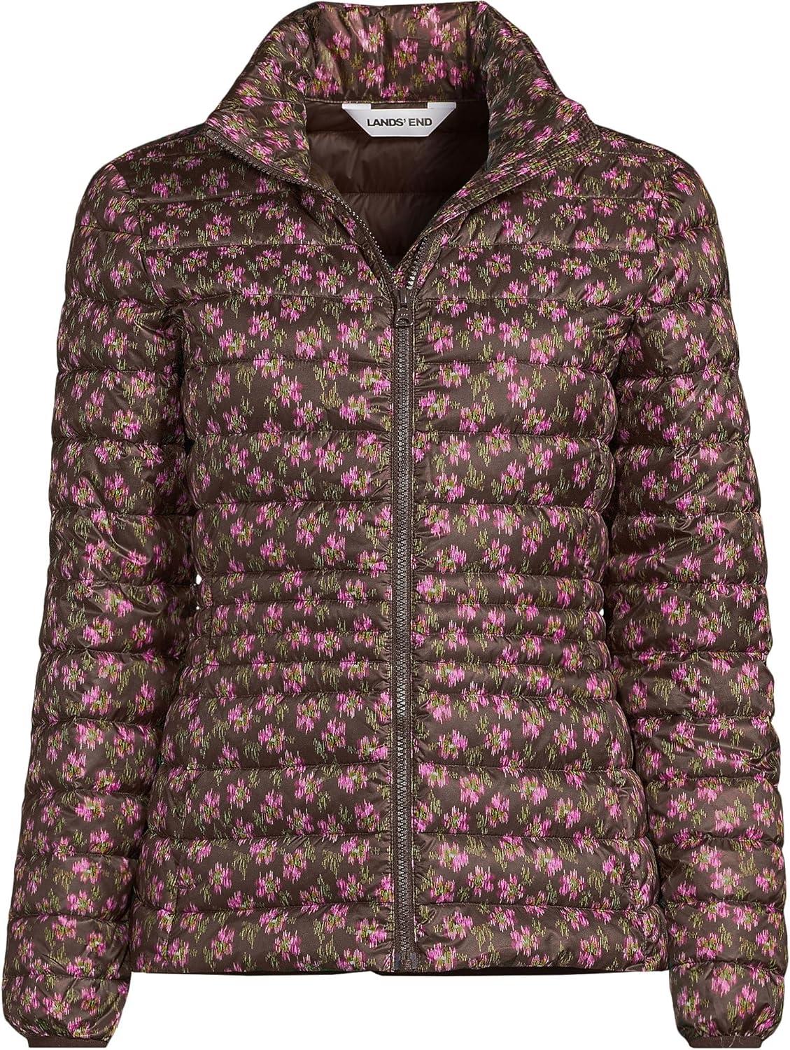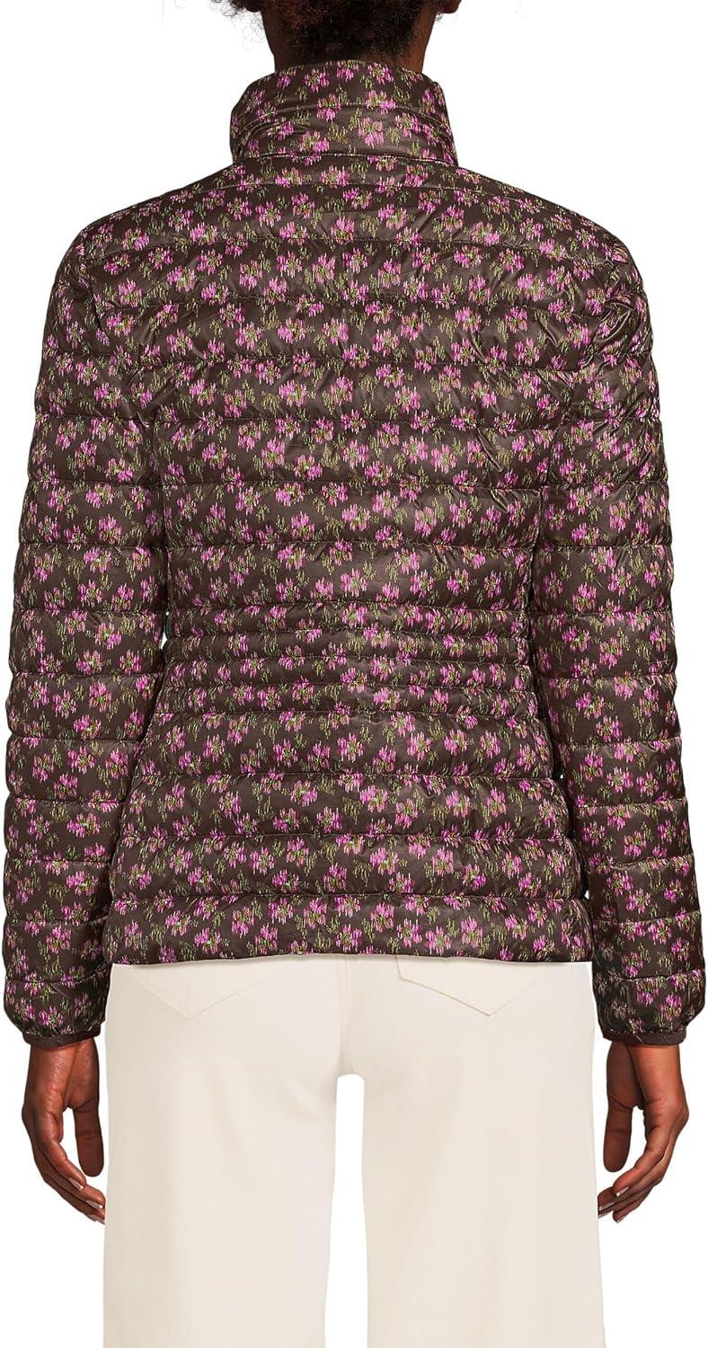 Lands’ End Women’s Wanderweight Ultralight Packable Down Jacket(Rich Coffee Ikat Floral)