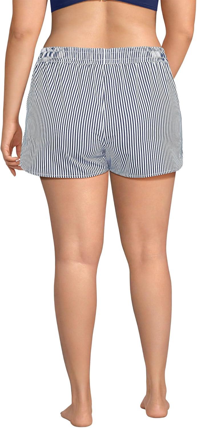 Lands’ End Women’s Woven Packable 3″ Dolphin Hem Swim Cover-up Shorts(Deep Sea Navy Mini Stripe)
