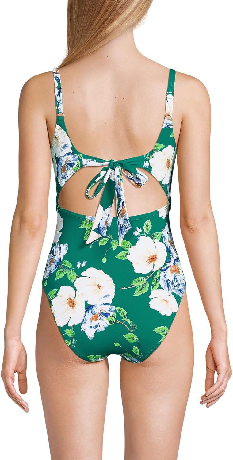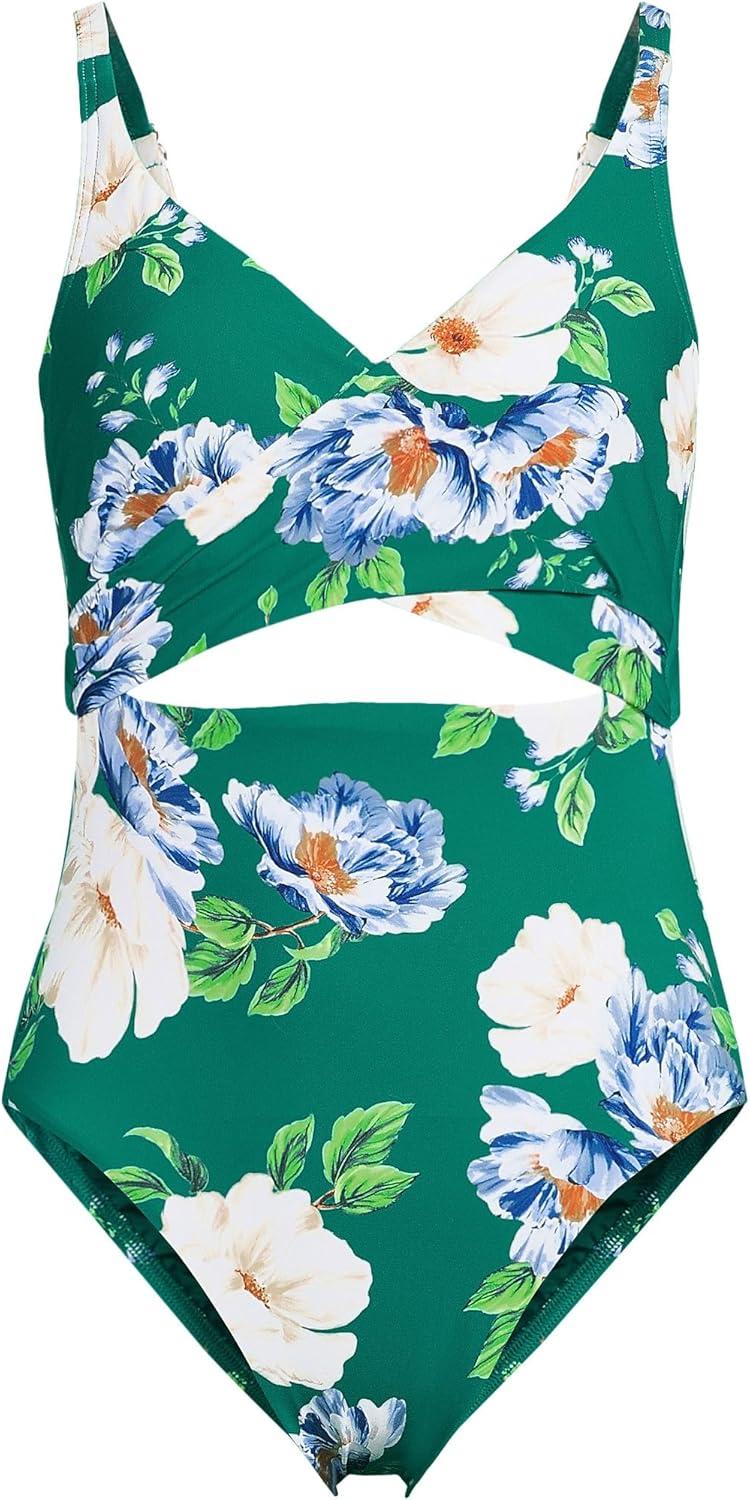 Lands’ End Women’s Wrap Monokini High Leg One Piece Swimsuit(Island Emerald Petunia Floral)