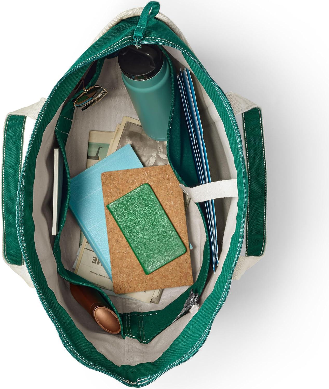 Lands’ End Zip Top Canvas Tote Bag(Natural/Bright Spruce)