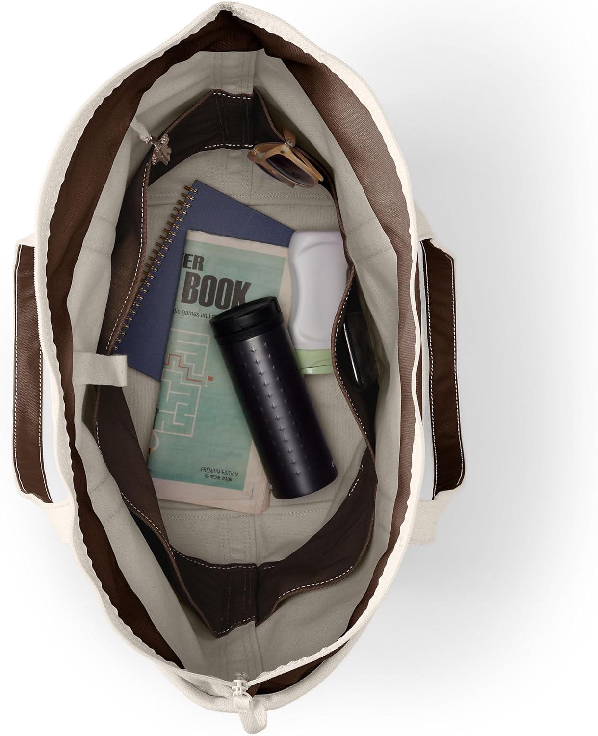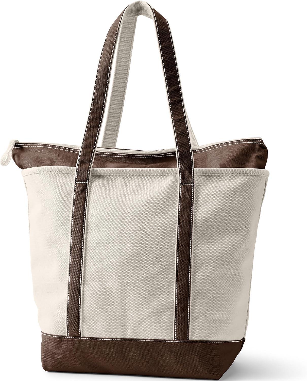 Lands’ End Zip Top Canvas Tote Bag(Natural/Brown Root)