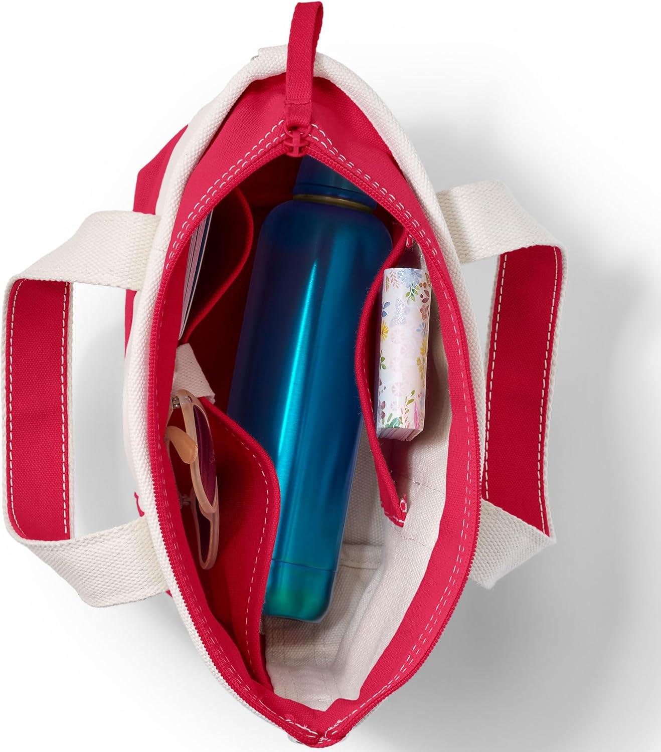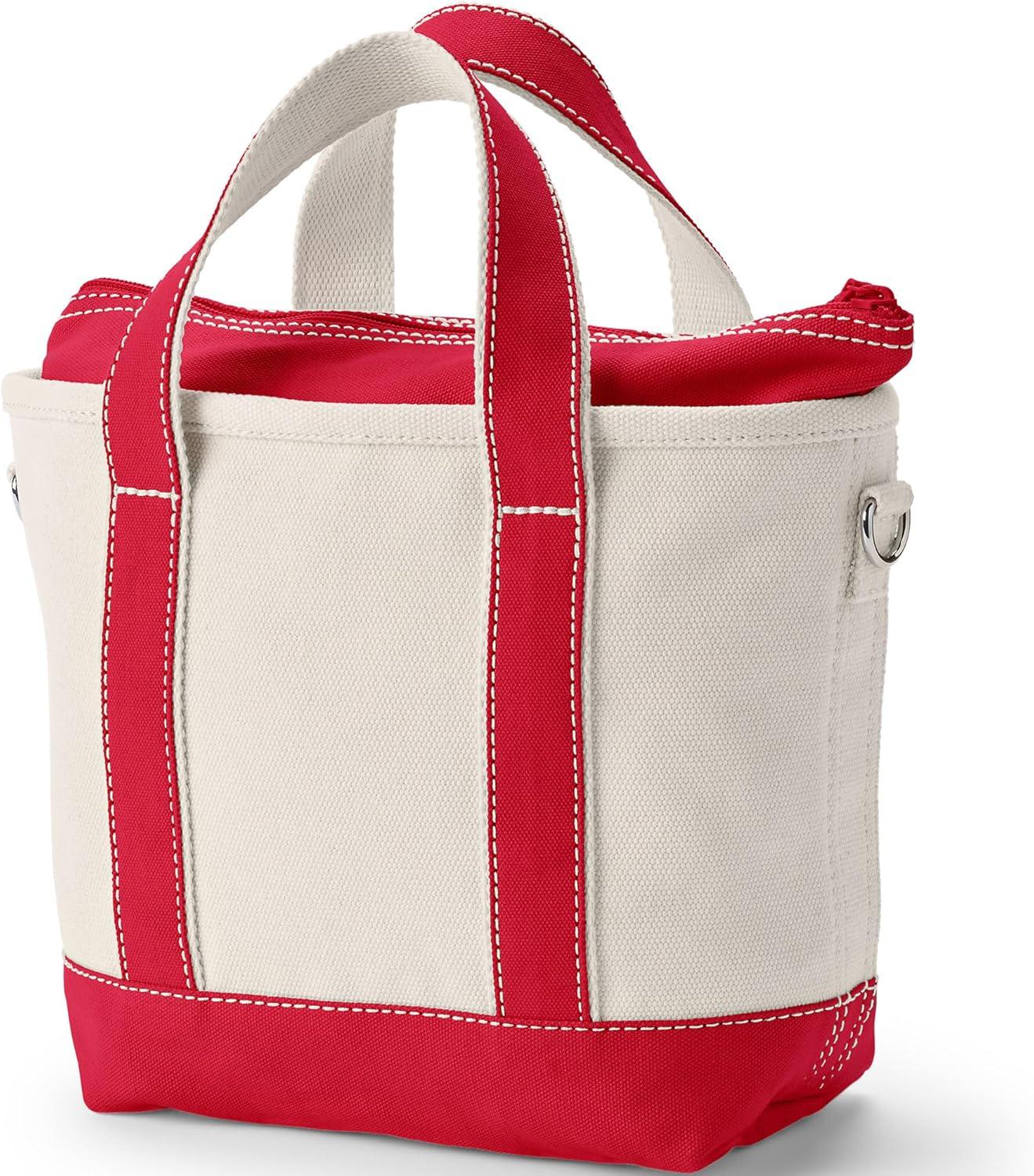 Lands’ End Zip Top Canvas Tote Bag(Natural/Heritage Red)