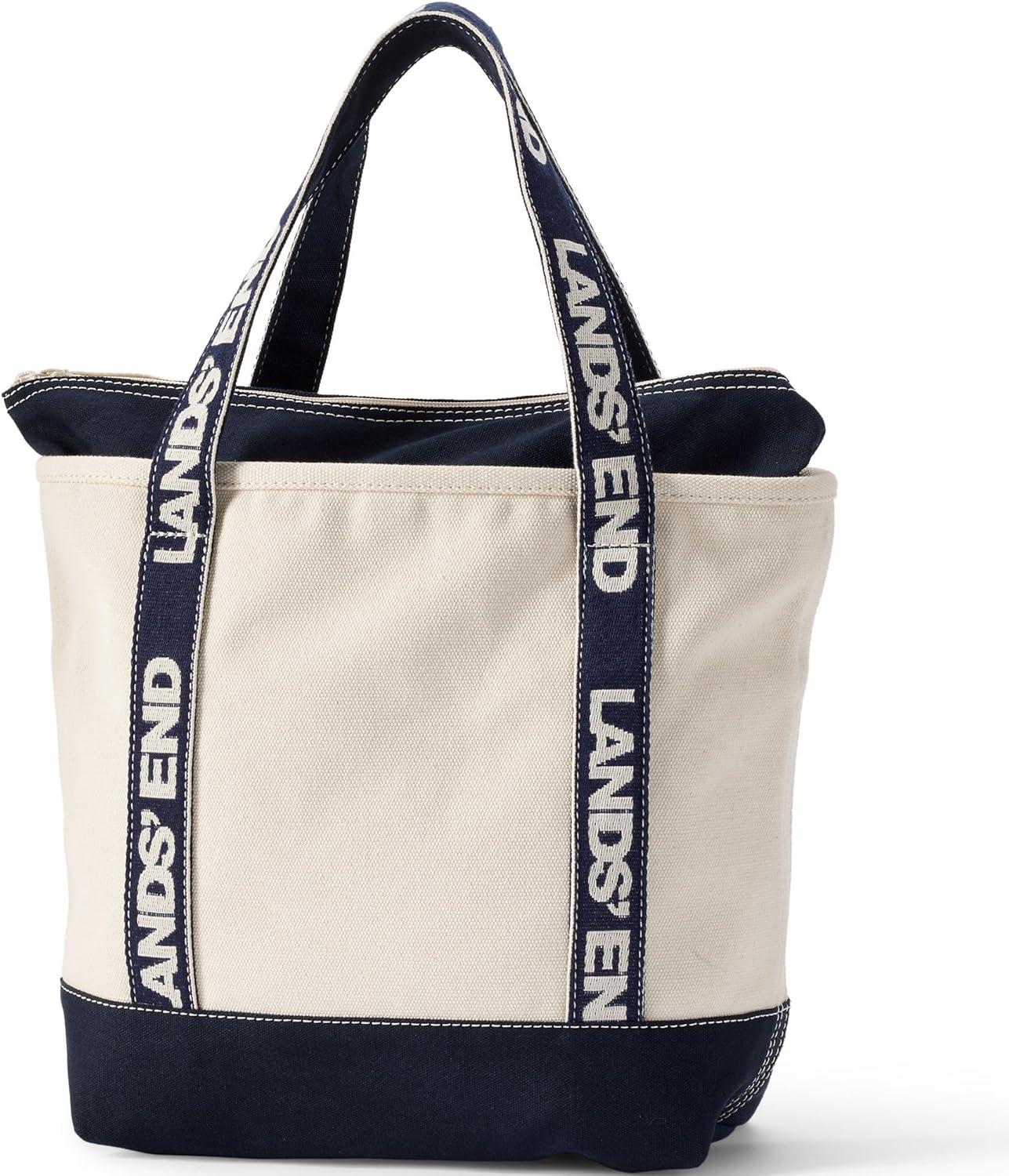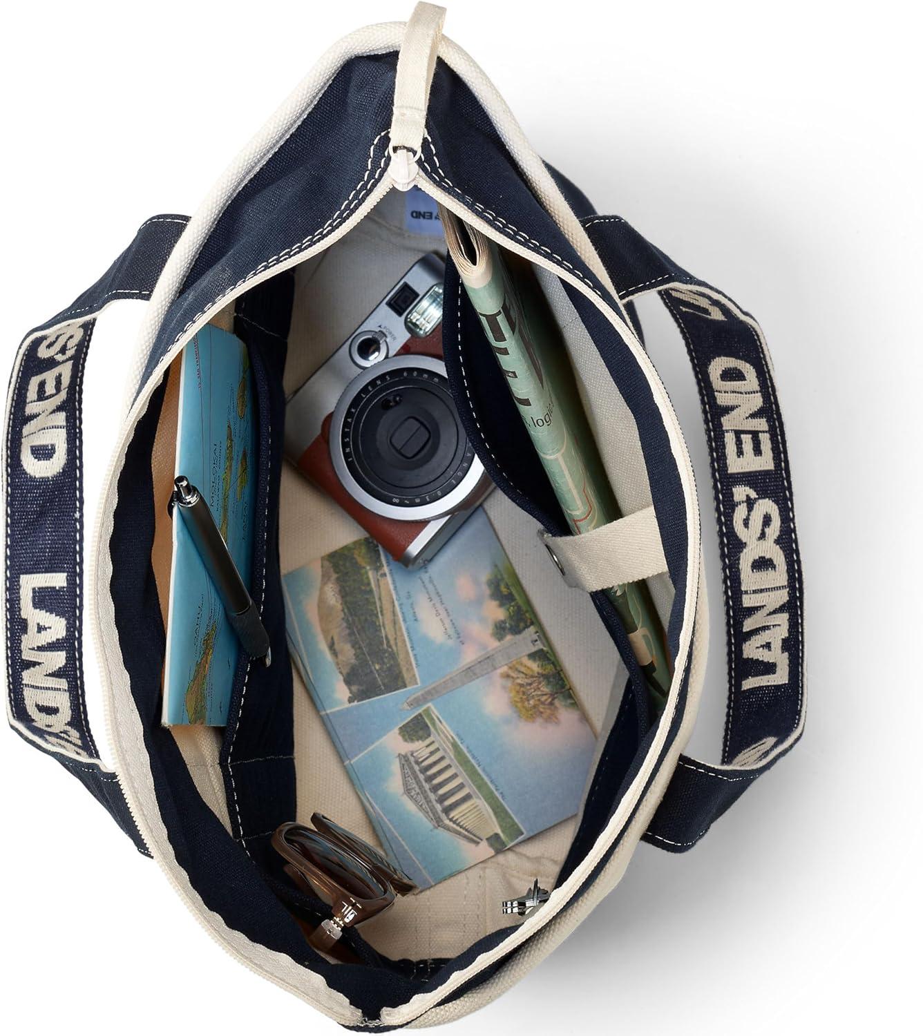 Lands’ End Zip Top Canvas Tote Bag(Natural/Navy Lands End)