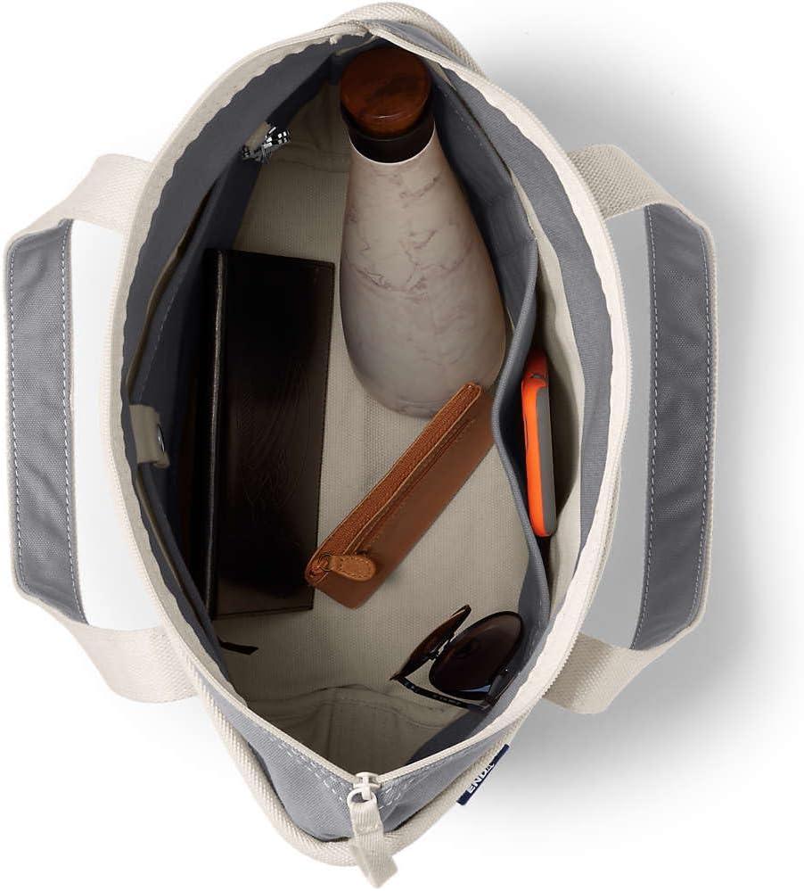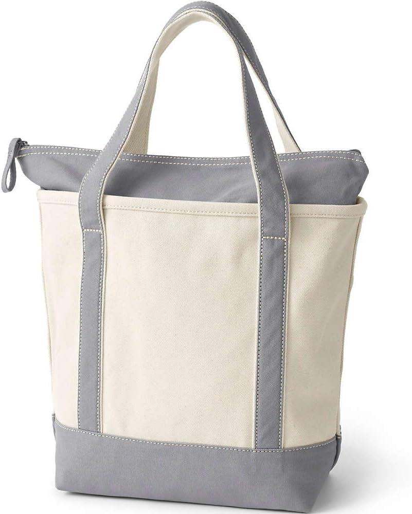 Lands’ End Zip Top Canvas Tote Bag(Natural/Silver Graphite)