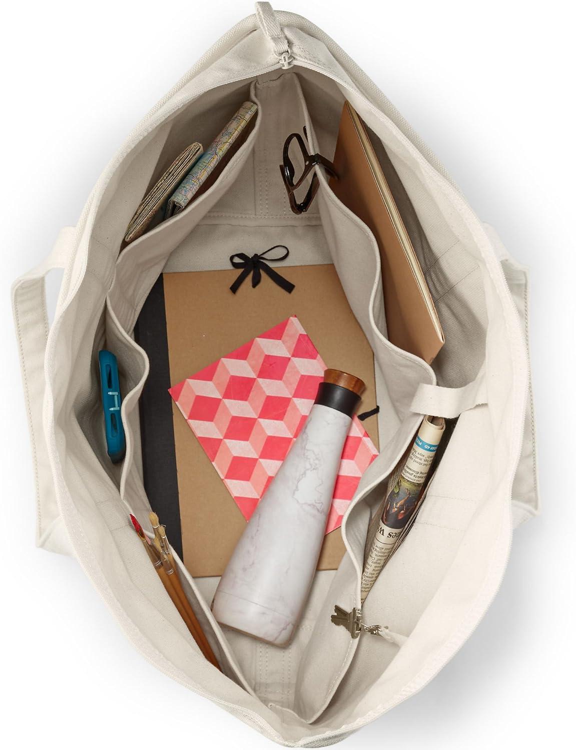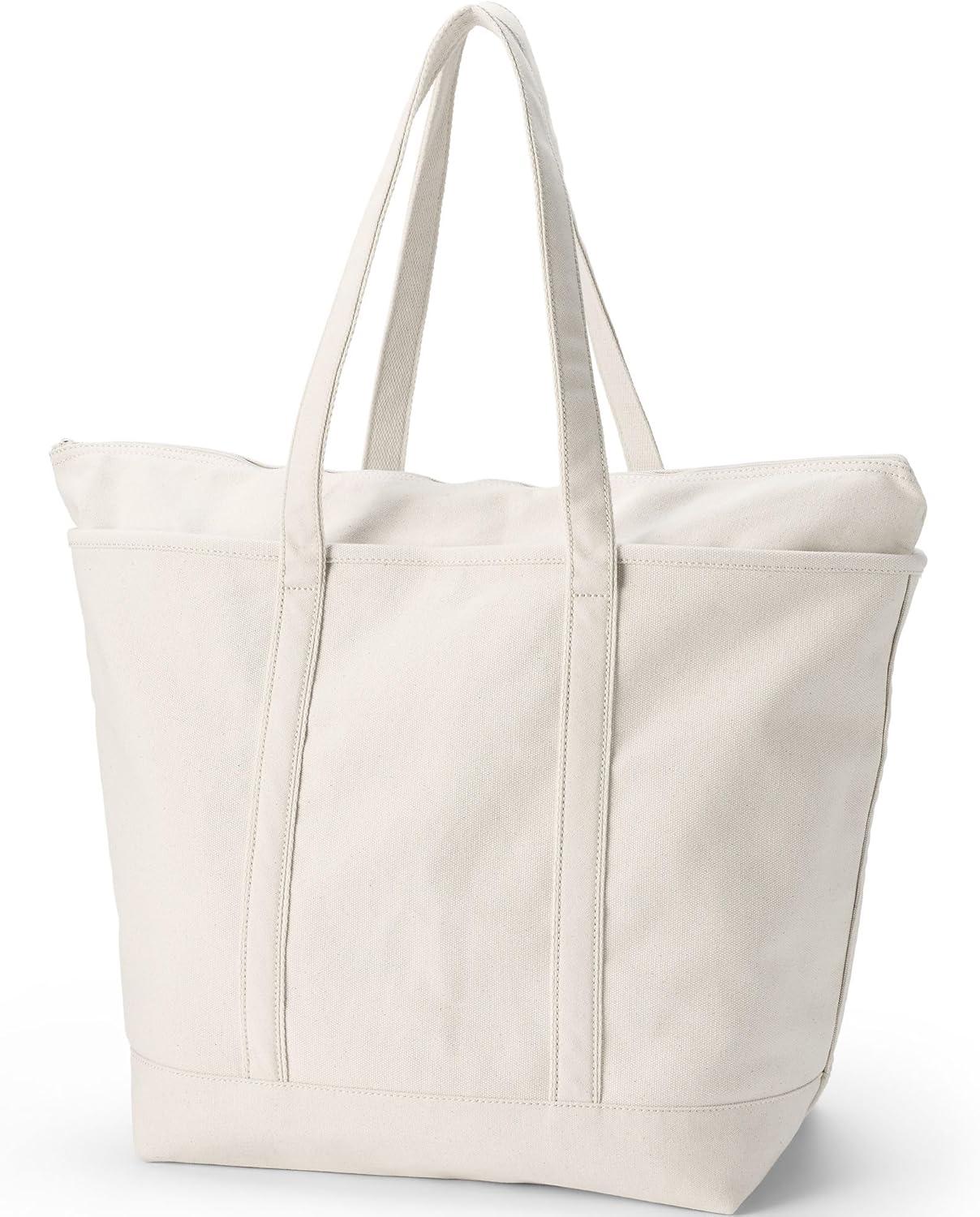 Lands’ End Zip Top Long Handle Canvas Tote Bag(Natural/Natural)